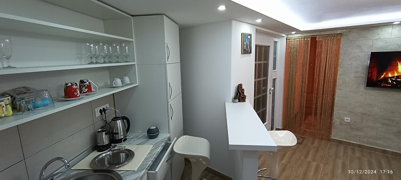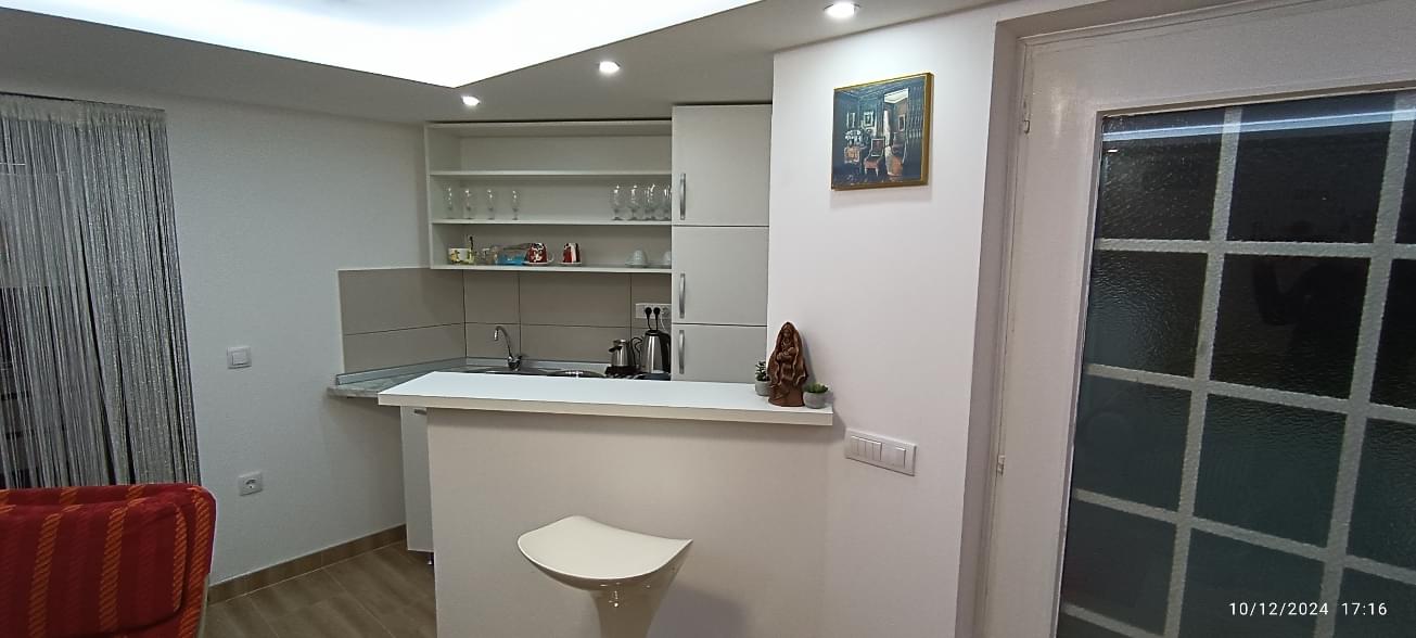 Apartman se sastoji iz jedne spavaće sobe dnevne sa čajnom kuhinjom i kupatilom.