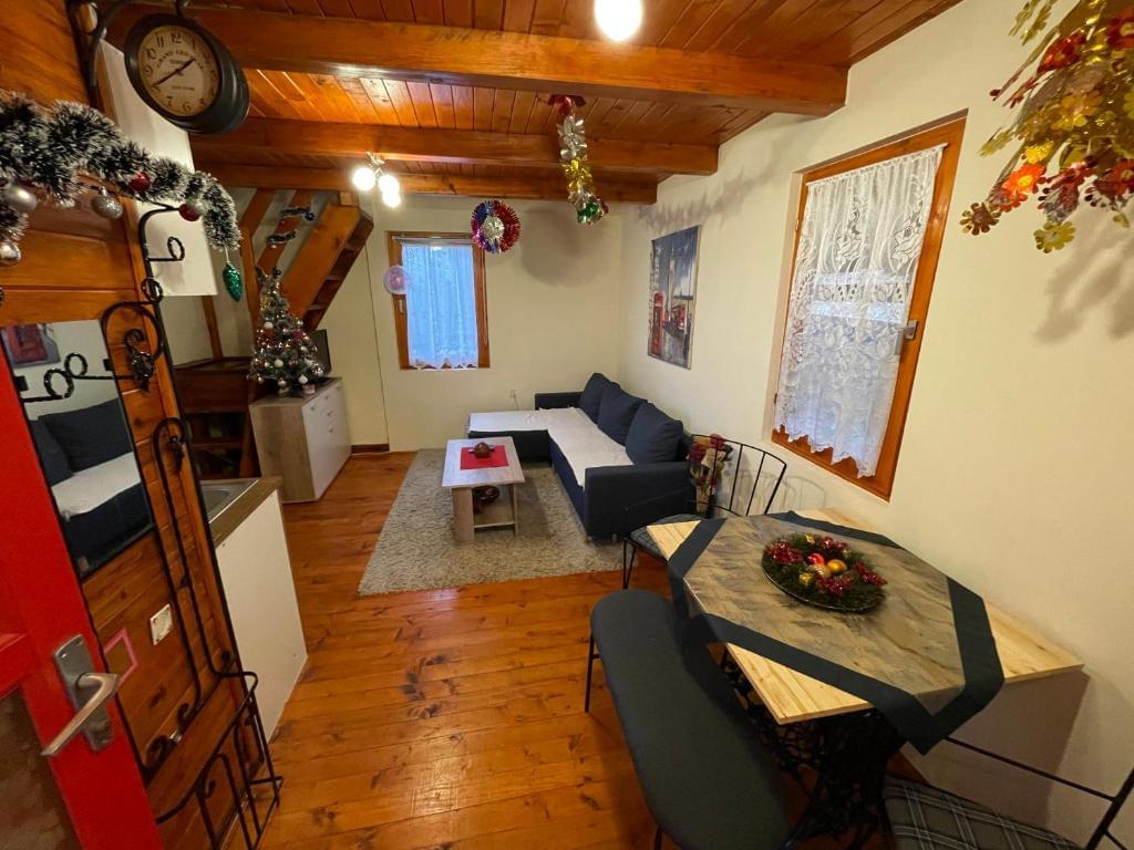 U prizemlju se nalazi jedna trpezarija i jedna dnevna soba sa kompletno opremljenom kuhinjom i ugaonom garniturom na rasklapanje, dok se na spratu nalaze dva singl kreveta i jedan bračni krevet. Televizija je sa Total TV kanalima, kao i besplatan bežični internet. U kući je zabranjeno pušenje, organizacija proslava, zabava… Namenjena je isključivo za miran odmor u prirodi.