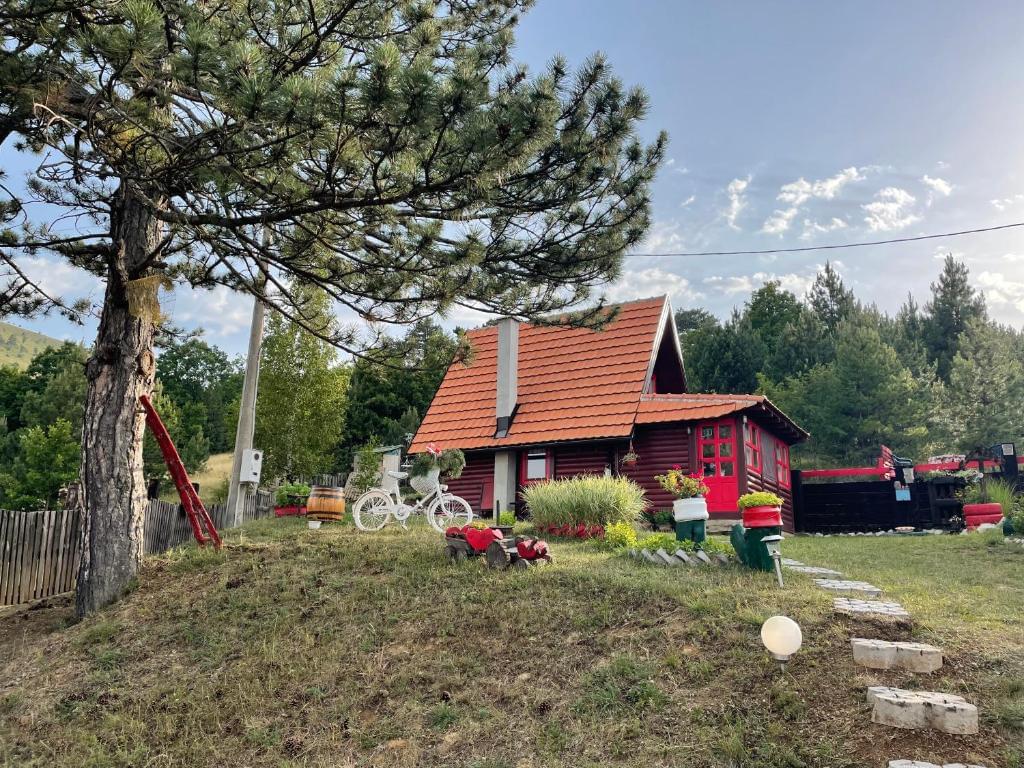 U mirnom delu Zlatibora, ispod velelepnog masiva Čigota, udaljena svega 4,5 km od centra Zlatibora, okružena borovom šumom, idealno je mesto za odmor, kako u zimskim, tako i u letnjim danima. Poseduje svoje ograđeno dvorište od 10 ari, a samim tim i parking. Ova drvena planinska kuća od 43 m2 izgrađena od prirodnog materijala raspolaže sa 3 prostorije i jednim kupatilom.