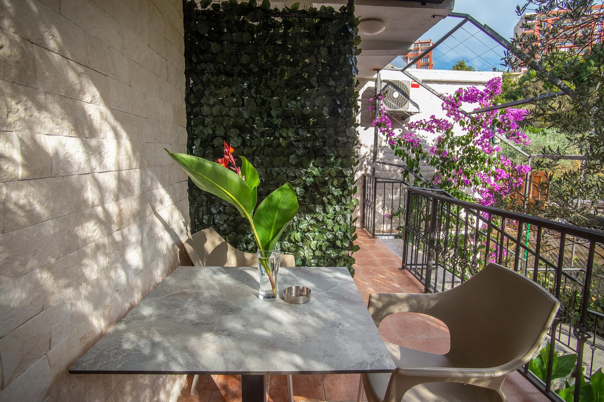 Objekat se nalazi na samoj plaži, u velikoj hladovini od palmi, oleandera, vinove loze i u pozadini objekta nalazi se hiljadugodišnji maslinjak. Pored samog objekta nalazi se maslina stara 600 godina. Veliko dvorište je veoma podesno za djecu. Objekat ima tradiciju višegodišnjeg izdavanja objekta turistima sa svih meridijana. Veliko zelenilo čini ovaj objekat oazom za odmor i uživanje.