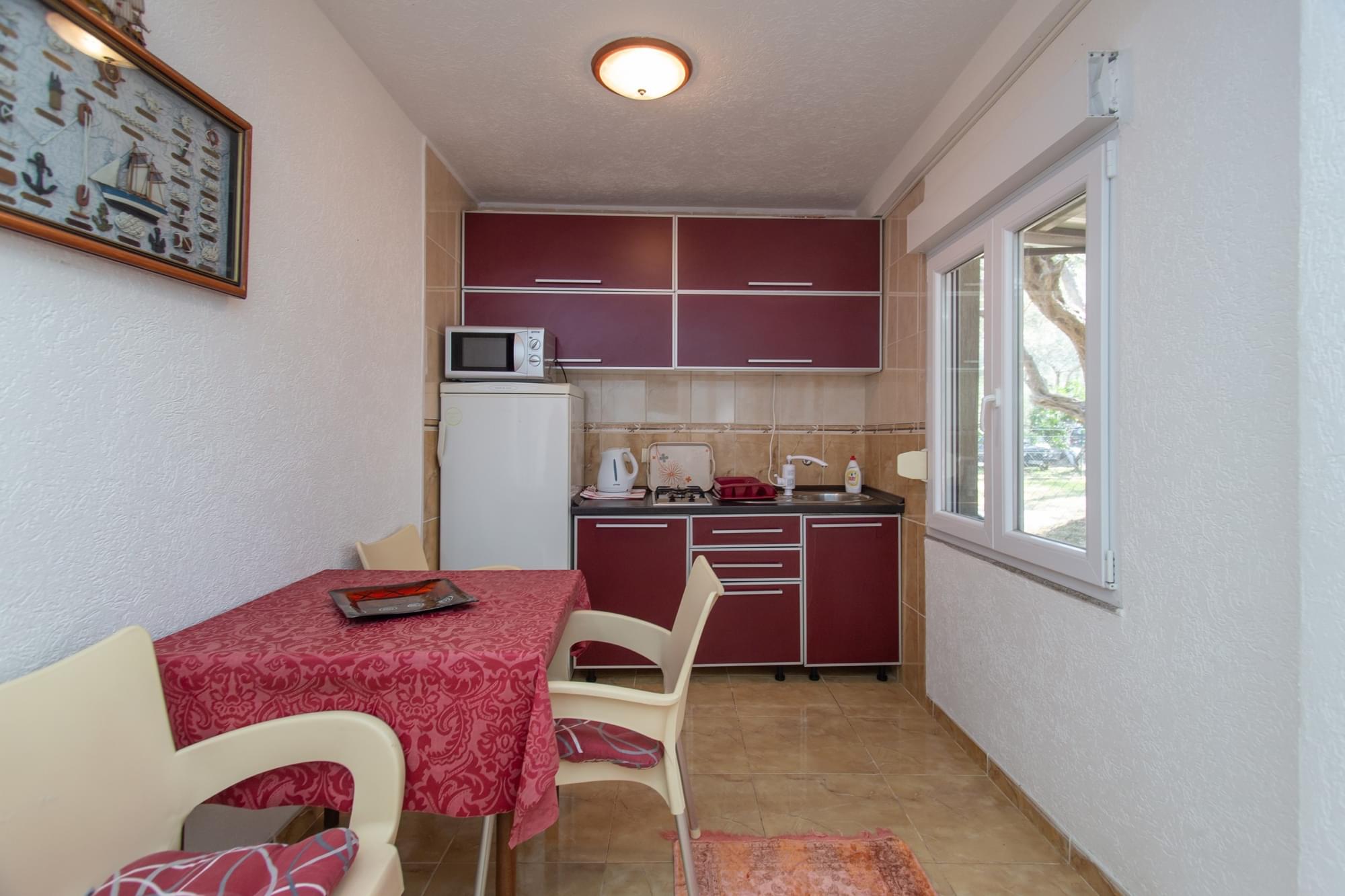 Objekat se nalazi na samoj plaži, u velikoj hladovini od palmi, oleandera, vinove loze i u pozadini objekta nalazi se hiljadugodišnji maslinjak. Pored samog objekta nalazi se maslina stara 600 godina. Veliko dvorište je veoma podesno za djecu. Objekat ima tradiciju višegodišnjeg izdavanja objekta turistima sa svih meridijana. Veliko zelenilo čini ovaj objekat oazom za odmor i uživanje.