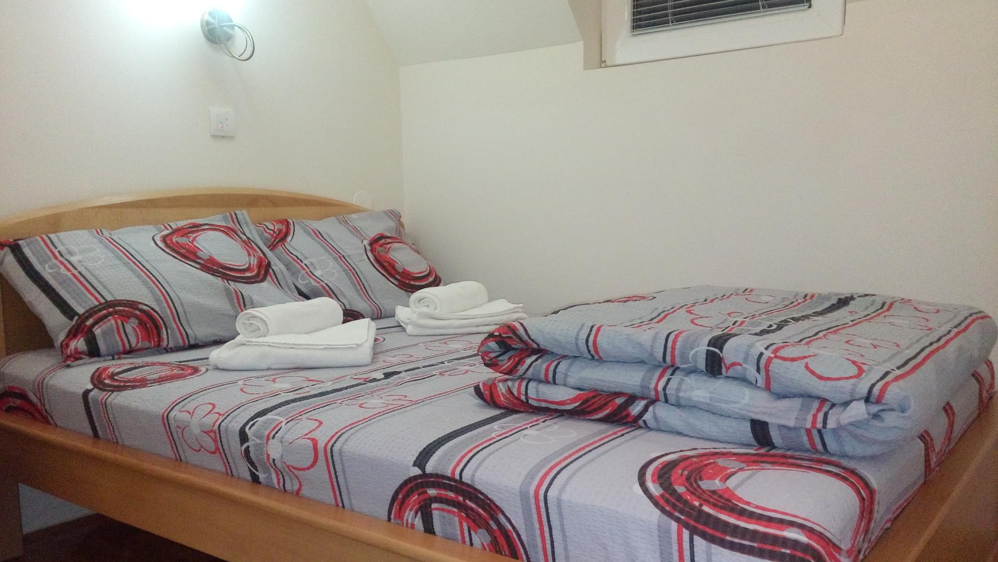 Spavaće sobe su smeštene na spratu, kao i kupatilo. Peškiri, posteljina, fen, toalet papir, sapun za ruke, deterdžent za suđe su gostu na raspolaganju.