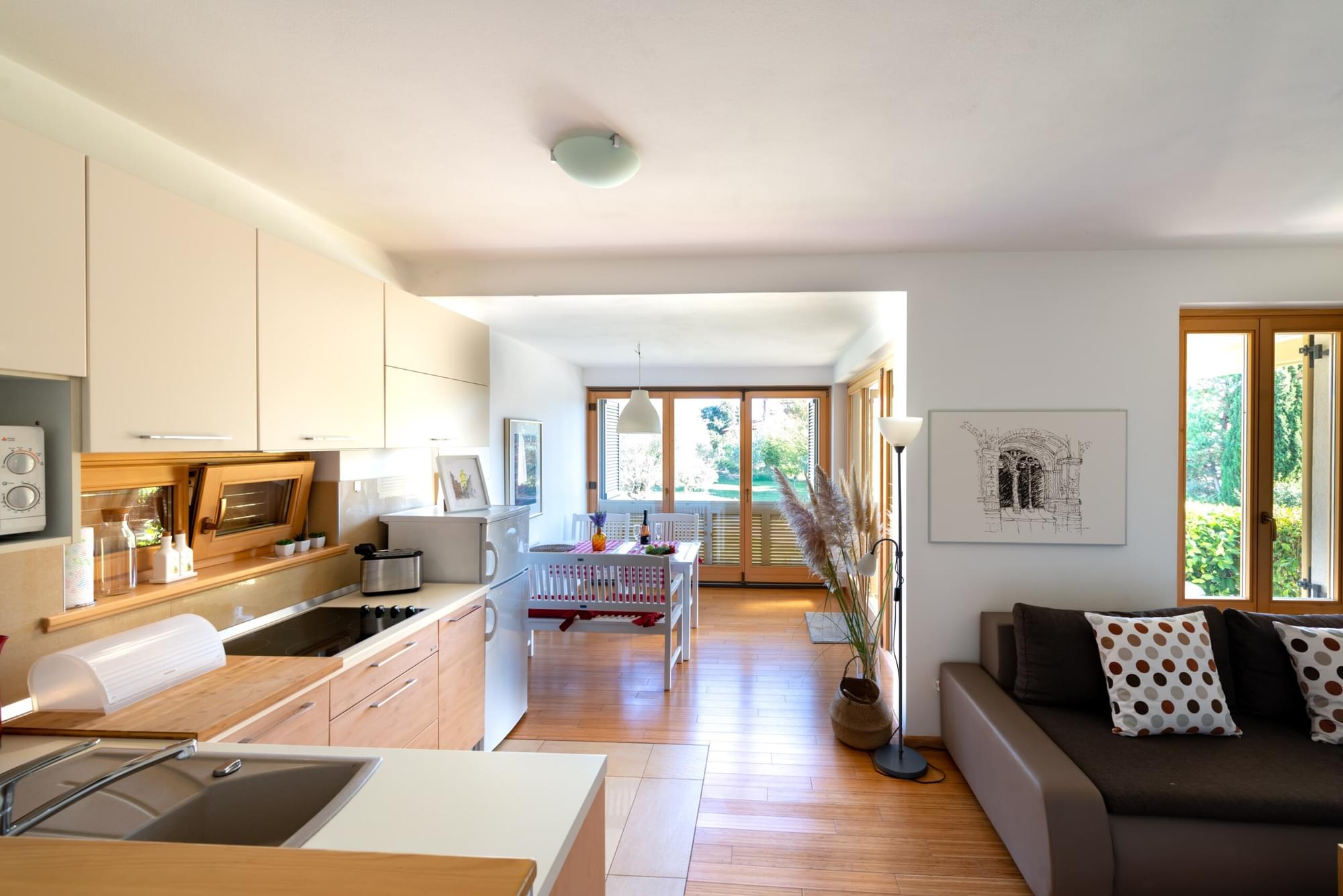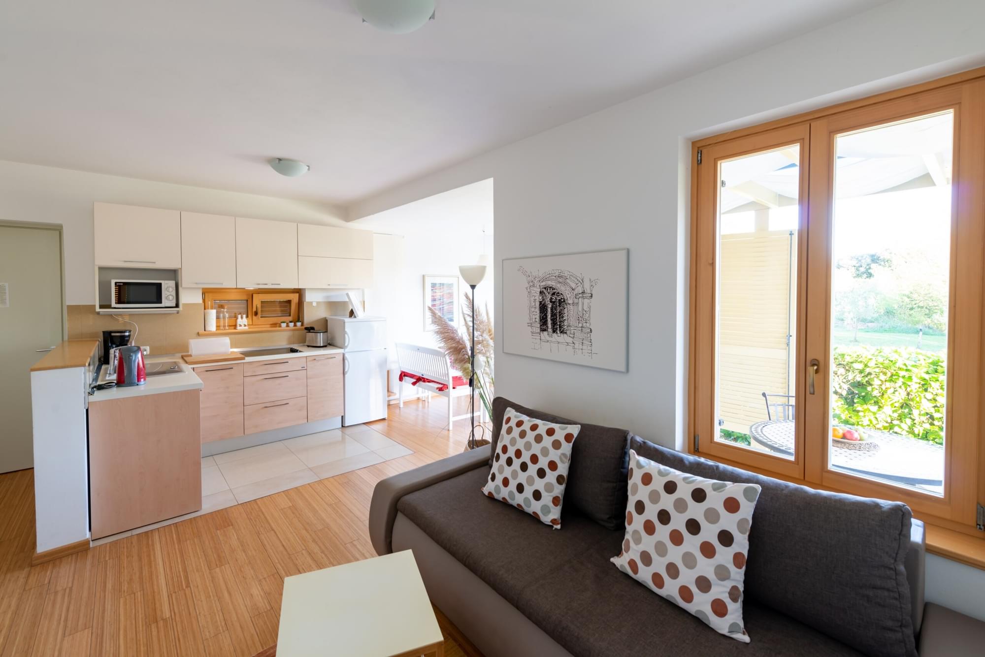 Each of them has complete privacy and uniqueness and a view of the green garden and pool. The swimming pool and sauna are in the garden and the deck is equipped with deck chairs and parasols. The pool has a section with bubbles and hydro massage.