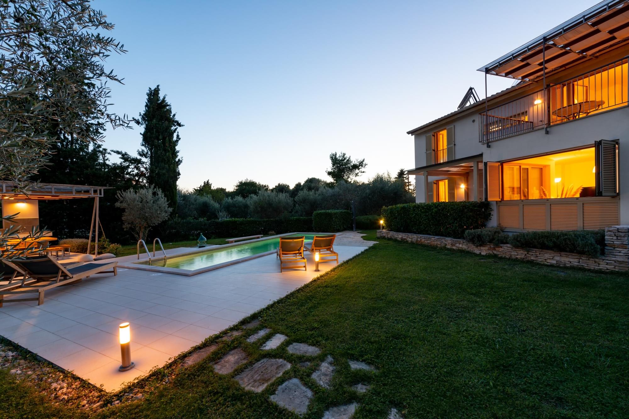 Each of them has complete privacy and uniqueness and a view of the green garden and pool. The swimming pool and sauna are in the garden and the deck is equipped with deck chairs and parasols. The pool has a section with bubbles and hydro massage.