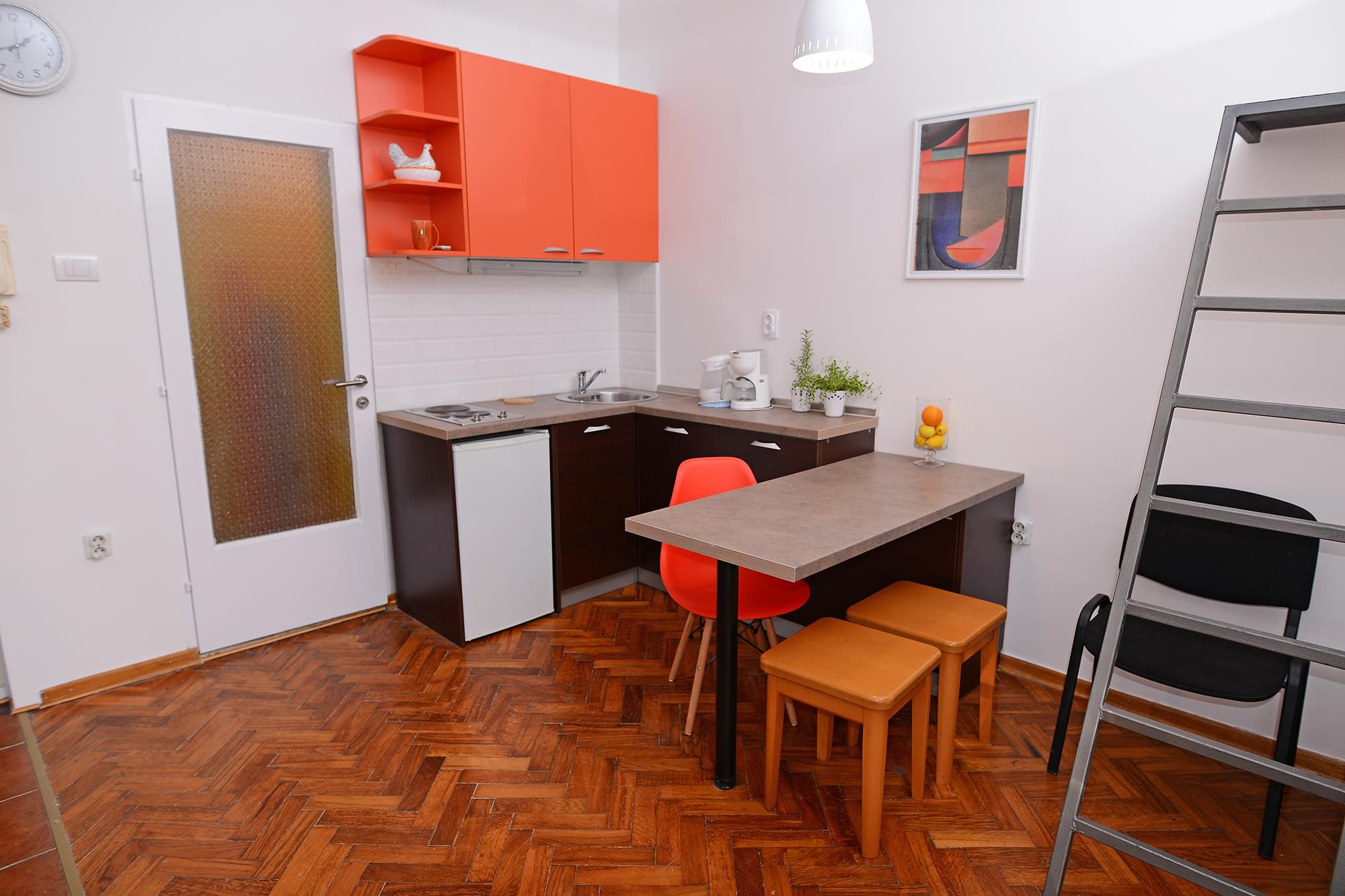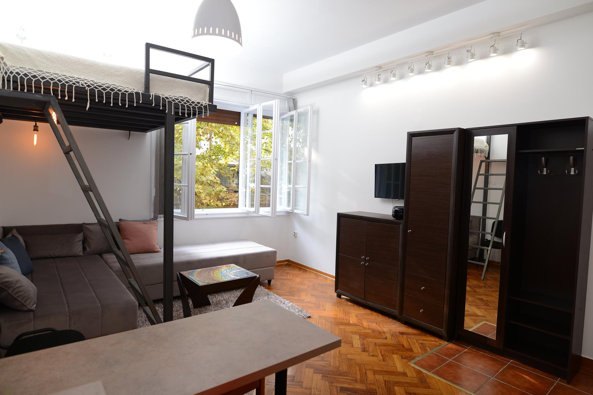Central Spot Apartment 2. je veoma prostran studio sa galerijom na kojoj se nalazi bračni krevet.