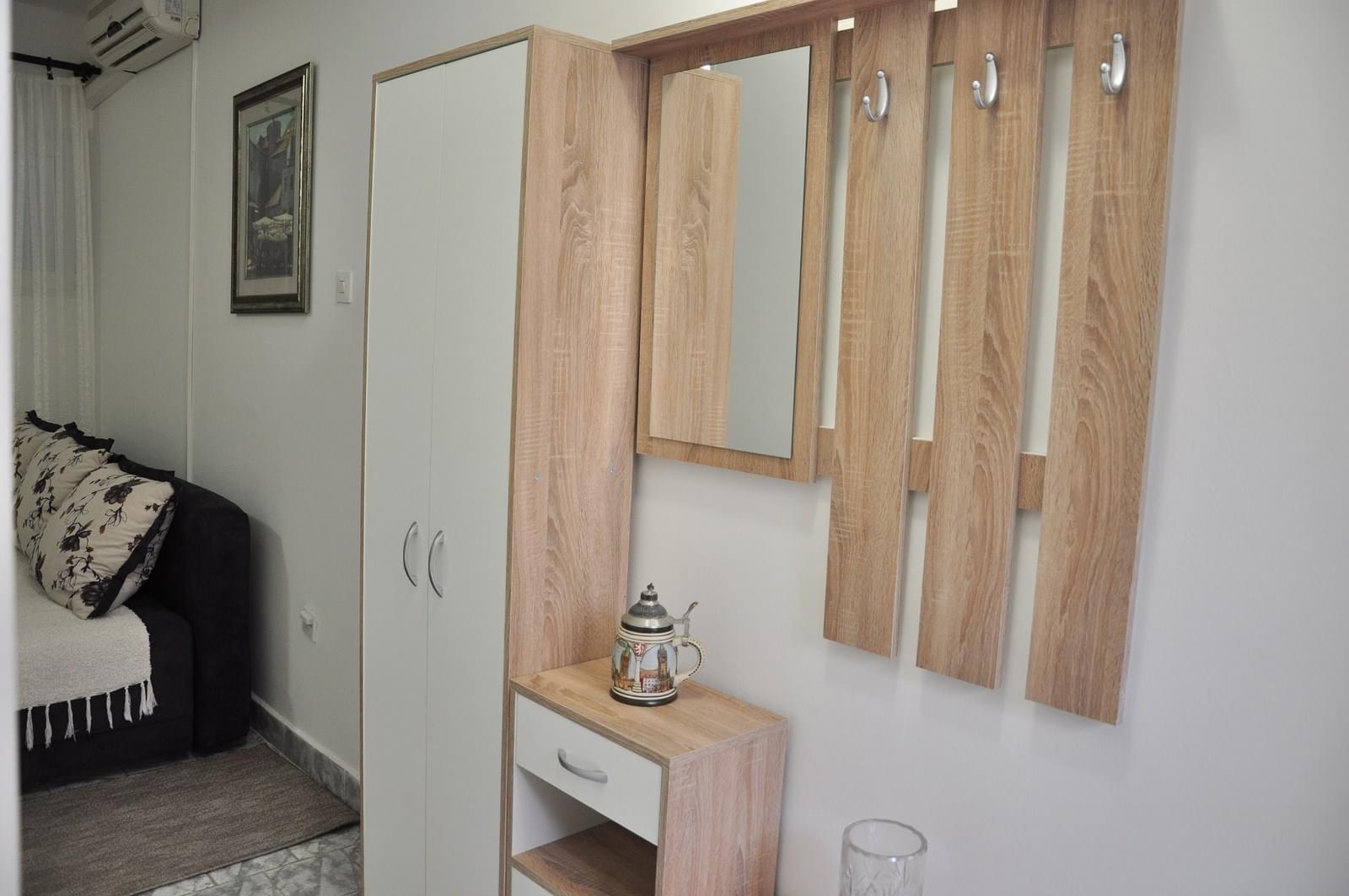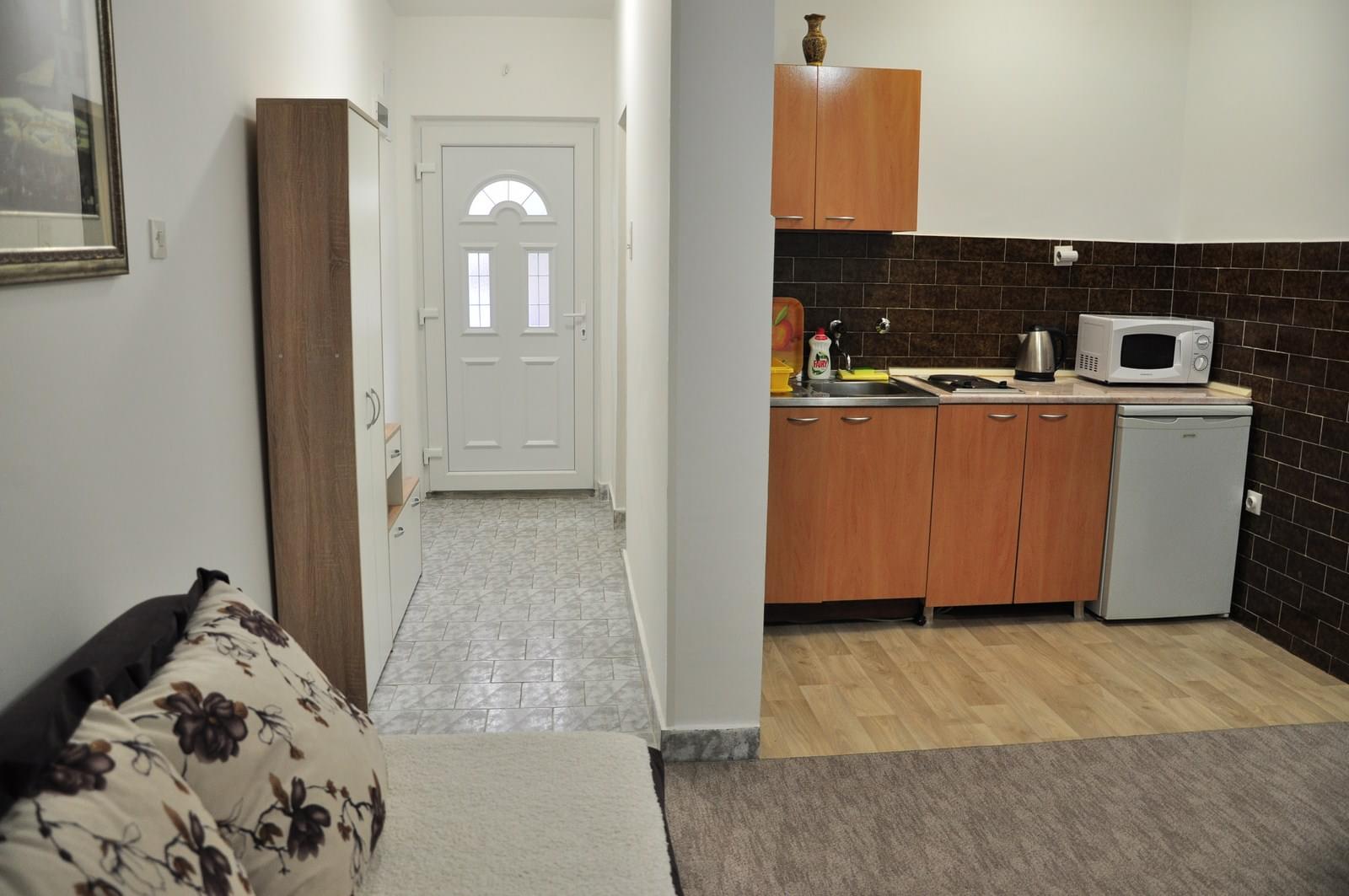 Apartman sa jednom sobom Comfort -Inside view- nalazi se u prizemlju vile udaljene 300m od plaže. Apartman je potpuno opremljen za udoban boravak 1-3 osobe, ima poseban ulaz, hodnik, dnevni boravak sa kuhinjom, manju spavaću sobu, kupatilo.