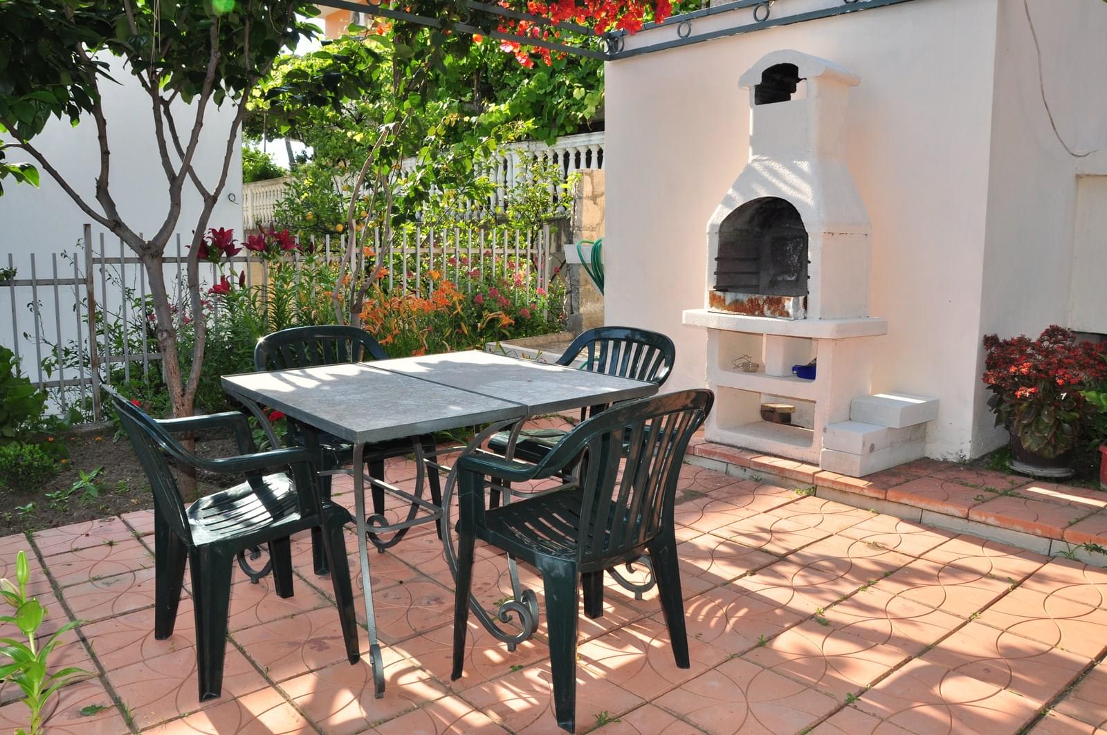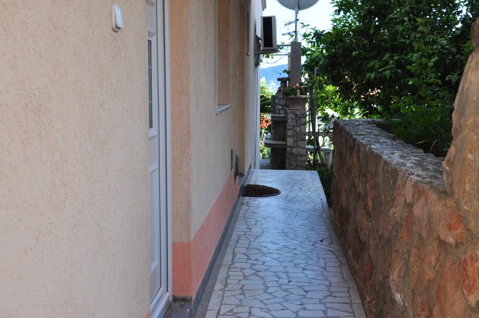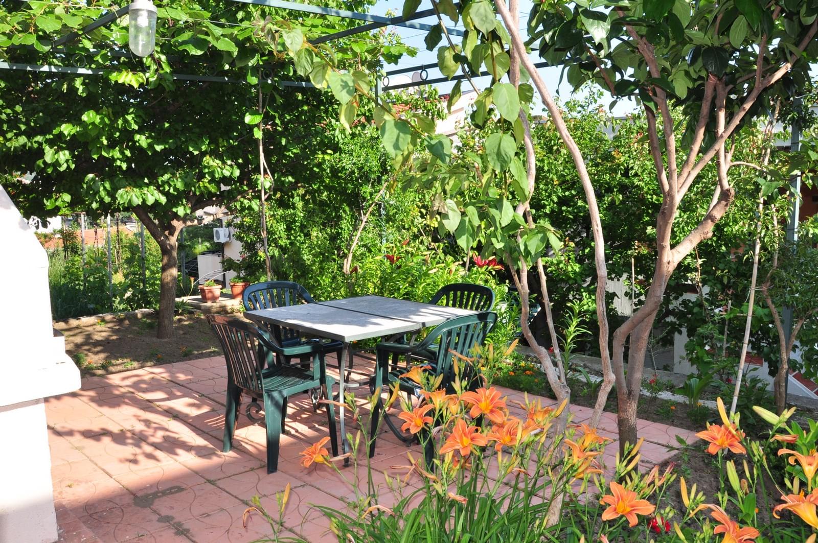 Nažalost, nema pogled u dvorište, ali je zato ušuškan i tih, a bočno izlazi na veliku terasu sa roštiljem. Pored kuće je obezbeđen besplatan parking. Na putu do plaže, i duž plaže, ima mnogo kafića, restorana i marketa tako da se lako i udobno organizuju. Nedaleko od kuće, i u pješačkoj dostupnosti, je nekoliko plaža, Žukotrlica, Topolica, Crvena plaža i Mala nudistička plaža.