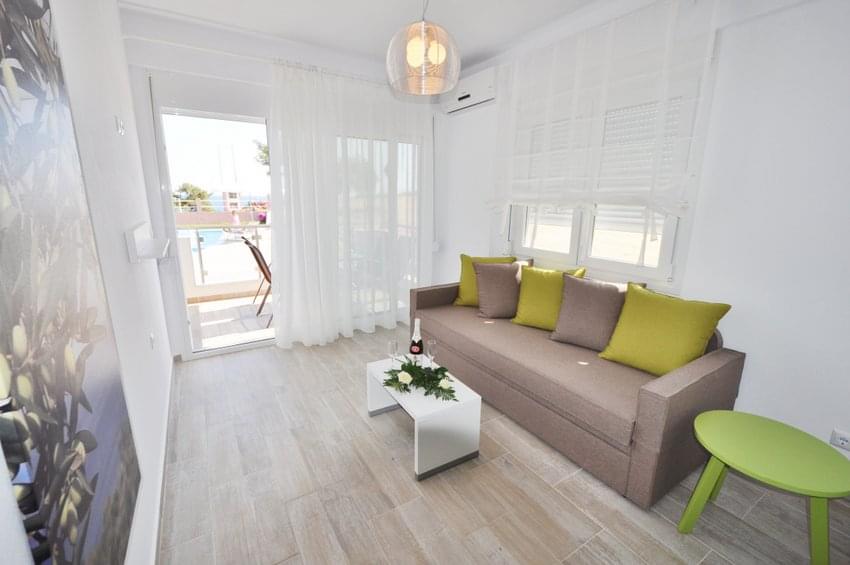 Situated about 1km west of Limenaria, perched on top of a hill 100 meters from the beach, you will find our newly built (2014) apartments as well as our sea view studios.