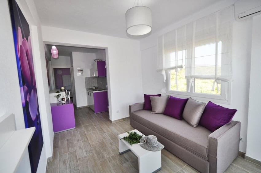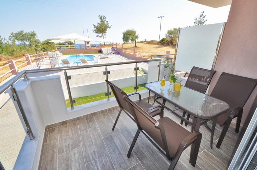 Situated about 1km west of Limenaria, perched on top of a hill 100 meters from the beach, you will find our newly built (2014) apartments as well as our sea view studios.