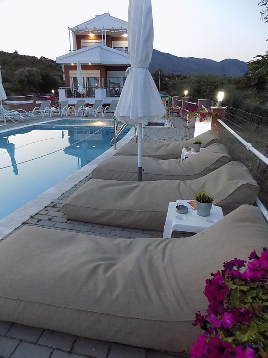 Outside there is a pool bar where you can start your day with a lovely breakfast with stunning sea views. Our guests can relax with a cocktail by the pool.