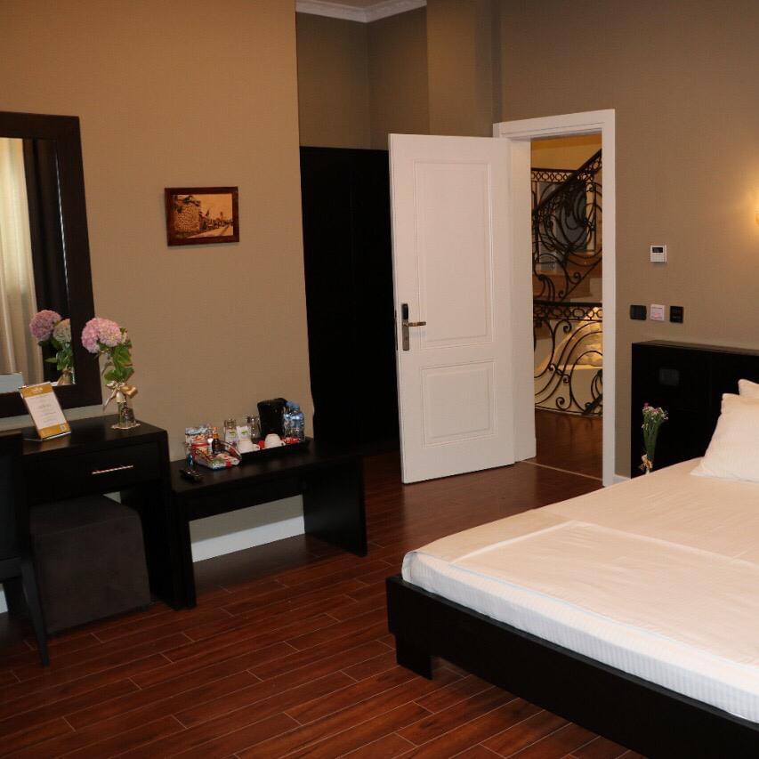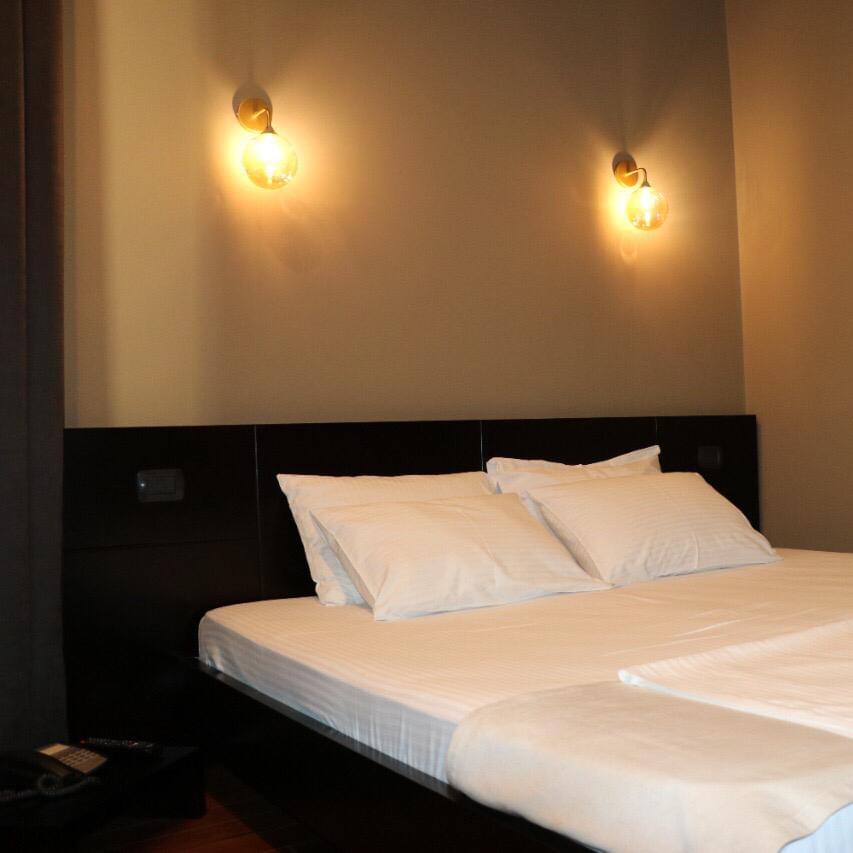 Located in the heart of Tirana, Domus Hotel offers a comfortable stay in an elegant architecture. Our hotel is in a superb location with friendly and helpful staff. The hotel offers comfortable and clean rooms. All the rooms have en-suite facilities, with its own shower and toilet facilities making it a perfect place to stay. The beds have curtains and panels ensuring that your stay is private and comfortable. The local transport links are great, we are located within 5 minutes walking distance from stations. Stay at our hotel and experience a special sojourn. This double room has a minibar, air conditioning and flat-screen TV.
