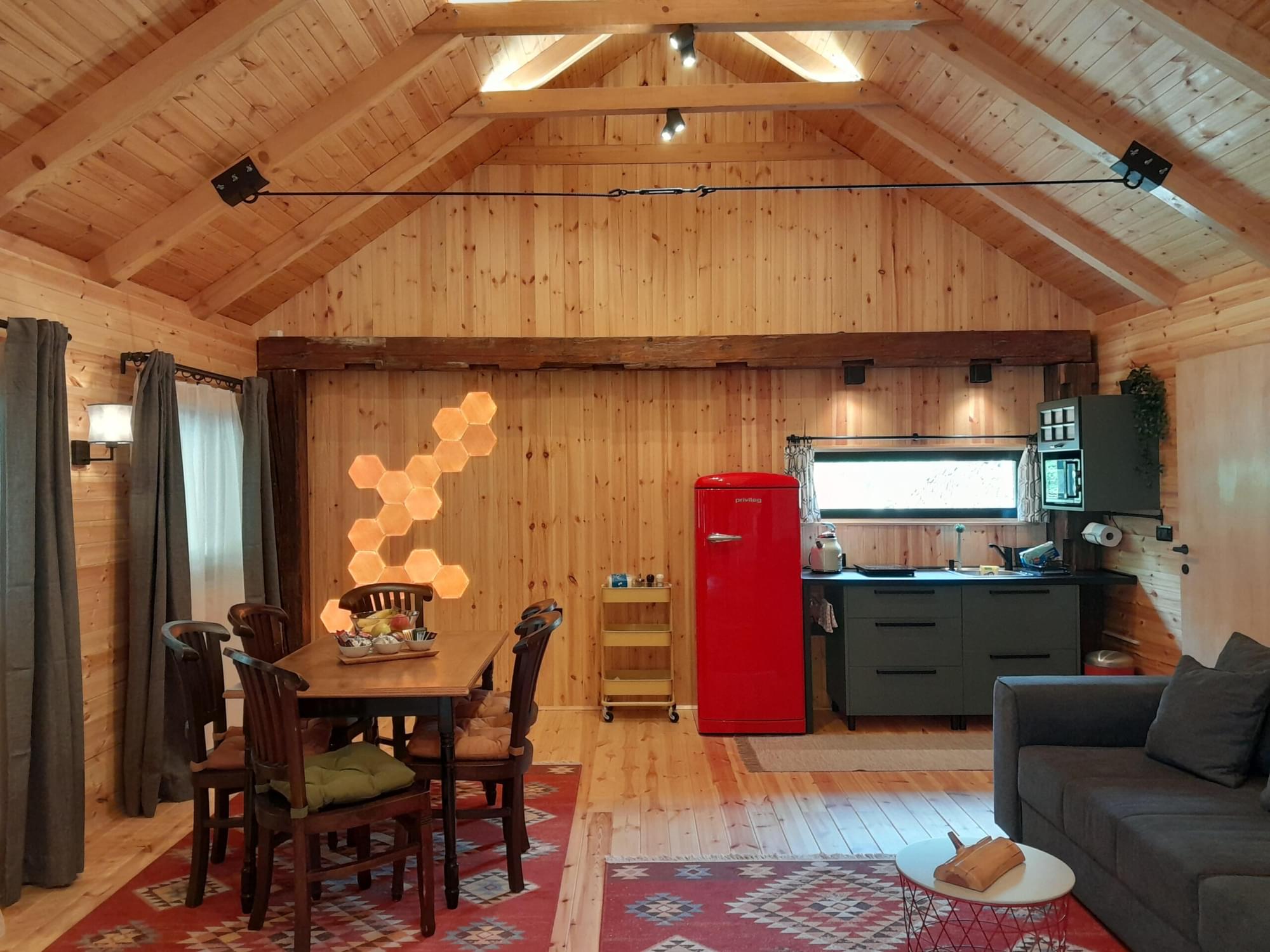 Ovo posebno imanje, okruženo voćnjakom i šumskim drvećem, pruža našim gostima utočište od urbanog života, garantujući potpunu privatnost u svakom kutku ovog bajkovitog mesta. Zvuk potoka, nežan šum lišća i prirodna hladovina leti stvaraju idilično okruženje za opuštanje i sanjarenje. Spoljni prostor, prekriven zelenim tepihom, oživljava na terasi smeštenoj pri samom ulazu. Pod krošnjom nagiba krova, ova očaravajuća terasa predstavlja savršeno utočište za uživanje na otvorenom, okupljanje s najdražima i deljenje trenutaka radosti. Uz to, roštilj na dohvat ruke postaje epicentar prijateljskih razgovora uz osvežavajuće napitke. Nica Wood je idealno mesto za porodična druženja, bežanje iz gradske gužve sa prijateljima, poslovno povlačenje u opuštenoj atmosferi, ali i za proslave i događaje usklađene sa prirodnim okruženjem i kućnim redom.