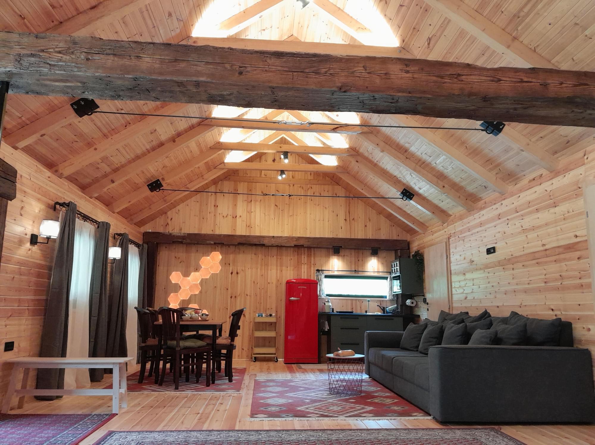 Kapacitet objekta tokom dana omogućava udoban smeštaj do 20 osoba. Sama kuća se odlikuje potpunim drvenim karakterom, prozračnošću i prostranošću. Dnevni boravak sa povezanom trpezarijom, potpuno opremljena kuhinja, te moderno kupatilo, čine srce ovog prostora. Tema unutrašnjeg uređenja odražava savremeni gostinjski ambijent koji pruža uživanje tokom svih godišnjih doba.