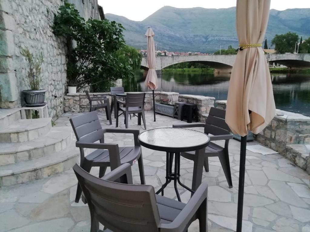 we are located in the heart of the old town along the banks of the river Trebisnjica. Double studio with a capacity of 2 beds, with the possibility that another prefabricated bed can be added later. So the maximum capacity is for 3 people. The studio has a bedroom of 12 m2, bathroom, kitchenette and hallway. Direct access to the terrace located on the river Trebišnjica and a beautiful view make this studio even more beautiful and tempting. Accommodation is located in the city center and yet in a separate and private location near which you have everything you need to stay. Restaurants, pubs, coffee bars, supermarkets and everything else are within a hundred meters. Parking is free and is located a few hundred meters from the old town where parking is not allowed, due to measures to protect historical value. Welcome