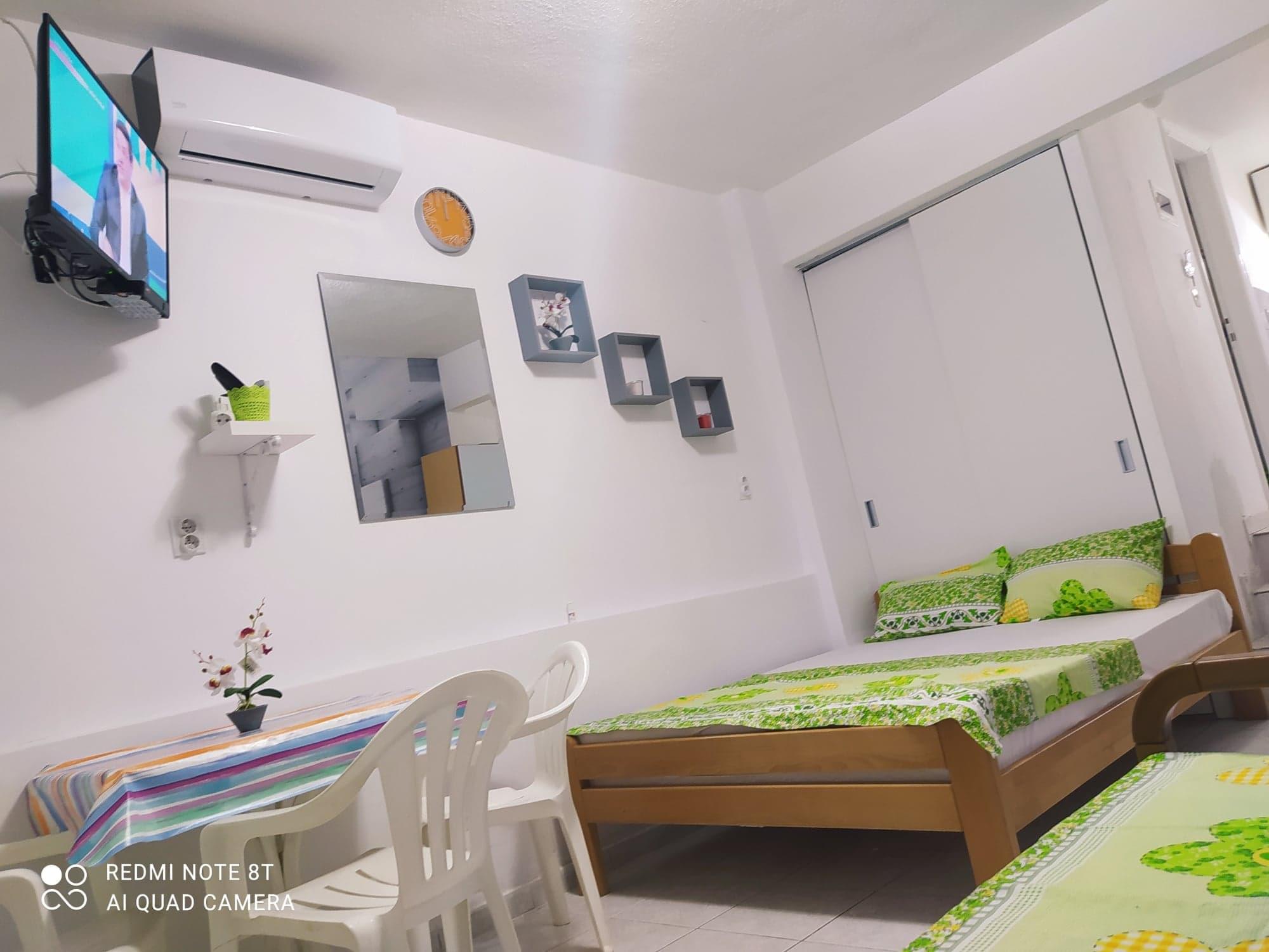 U ponudi su trokrevetni i četvorokrevetni apartman, koji se nalaze u Polihrono, na samo 60m od mora. Apartmani se nalaze jedan do drugog, poseduje kompletnu kuhinju, WiFi, TV sa srpskim kanalima i klima uređaj. Idealan za porodice koji žele mir i odmor. Apartmani su kompletno renovirani i sređeni prošle godine.