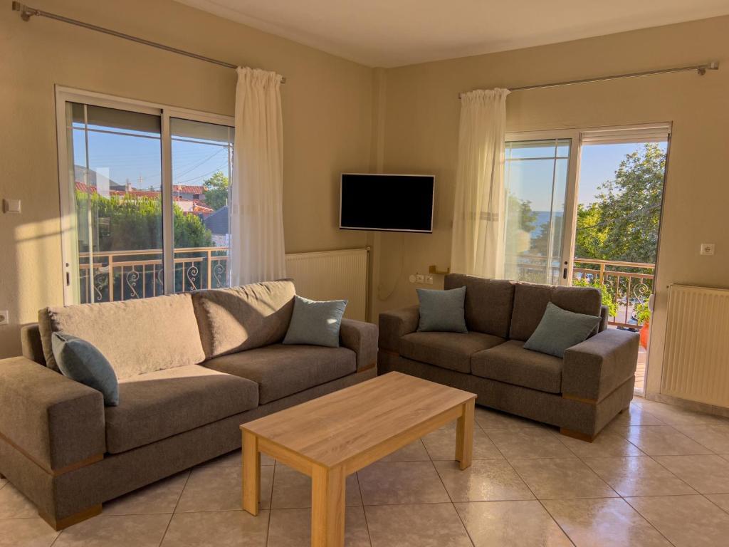 The fireplace is a top feature of this apartment. This spacious apartment comes with 1 living room, 4 separate bedrooms and 2 bathrooms with a shower and a hairdryer. In the well-fitted kitchen, guests will find a stovetop, a refrigerator, a dishwasher and kitchenware. The air-conditioned apartment features a flat-screen TV, a washing machine, soundproof walls, a tea and coffee maker as well as sea views. The unit has 5 beds.