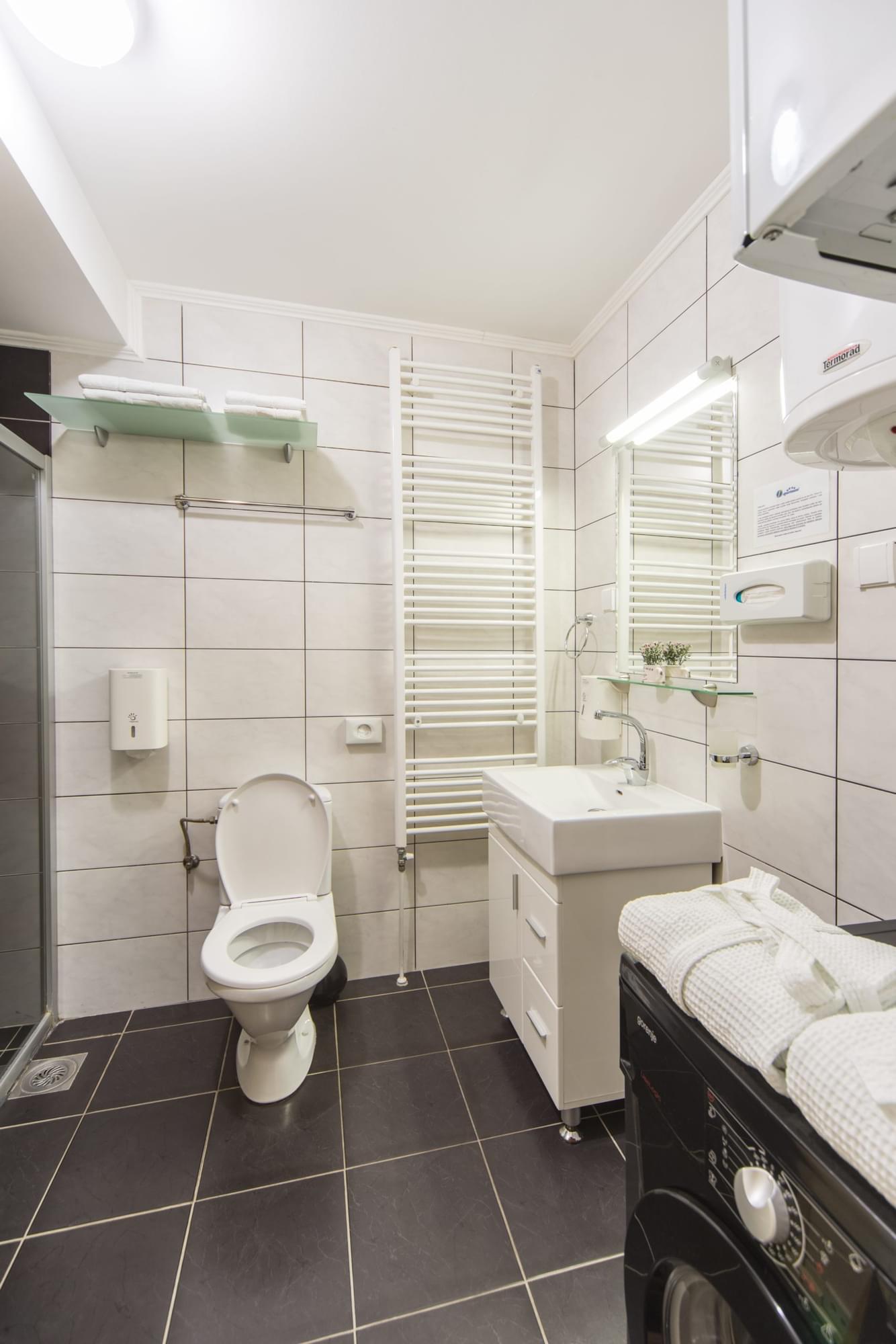 Komfornan, moderno opremljen apartman sa kapacitetom do 6 osoba, prostire se na 80m2. Sadrži dnevnu sobu sa kožnom ugaonom garniturom, 3 LCD TV-a, trpezariju sa stolom i stolicama, kompletno opremljenu kuhinju sa mašinom za sudove, dve spavaće osbe sa ukupno 3 francuska ležaja, ugradne plakare, kupatilo sa tušem, saunom, veš mašinom i mašinom za susenje veša, klima uredjaja, Wi-Fi.