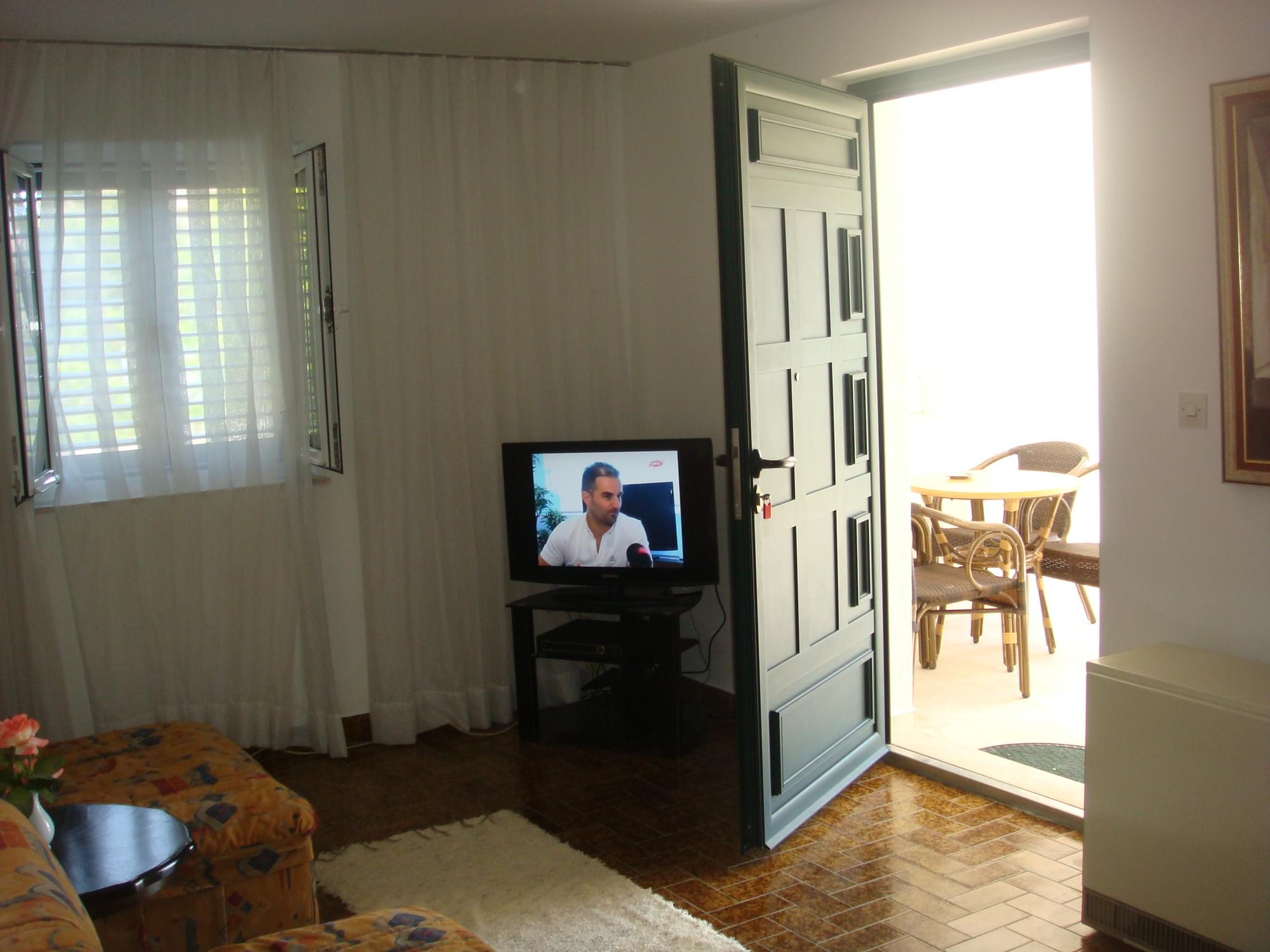 Ispred apartmana je prostrano dvorište gde deca mogu da provode vreme u igri ili spavaju u hladovini ispod starog hrasta.