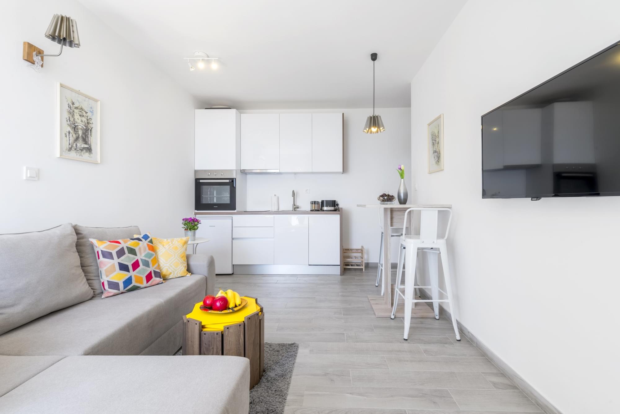 Apartment Mary is is only 3 years old!! It is most suitable for 2 + 1 adults or 2 adults and 2 children. It has everything You need for a pleasant stay. Hi-speed Internet connection, HD TV in the living room with lots channels to watch, nice and modern kitchen, really, really nice bathroom and bedroom, also with LED TV installed (smaller size) in the bedroom. Of course, there is a beautiful sea view straight from bed and living room.