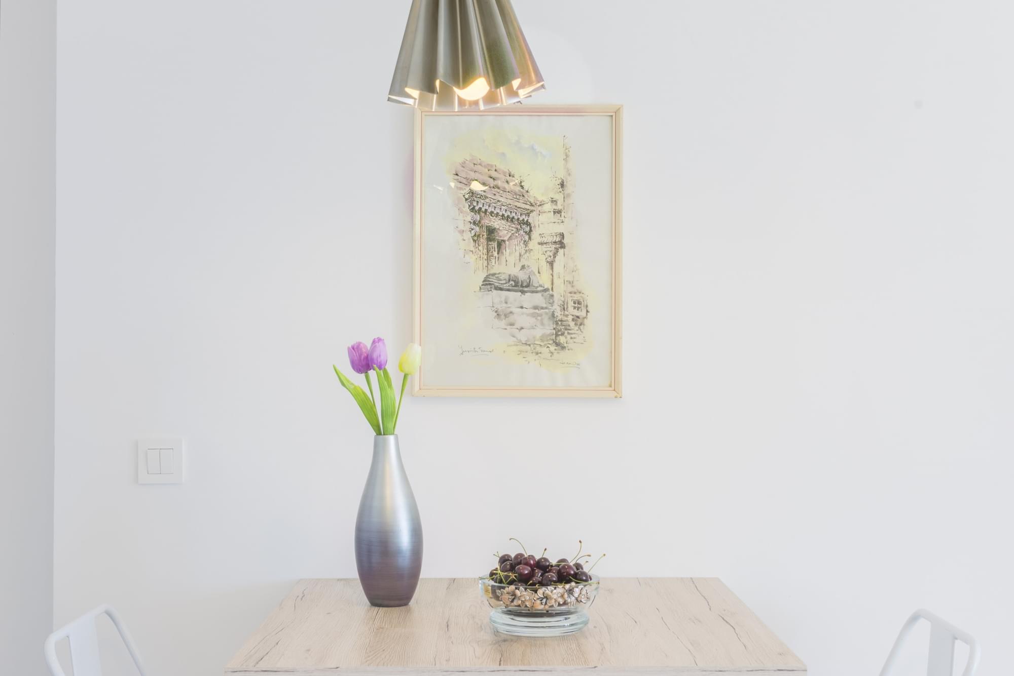 The apartment is equipped with linen, towels, cutlery, dishes, hairdryer, iron.