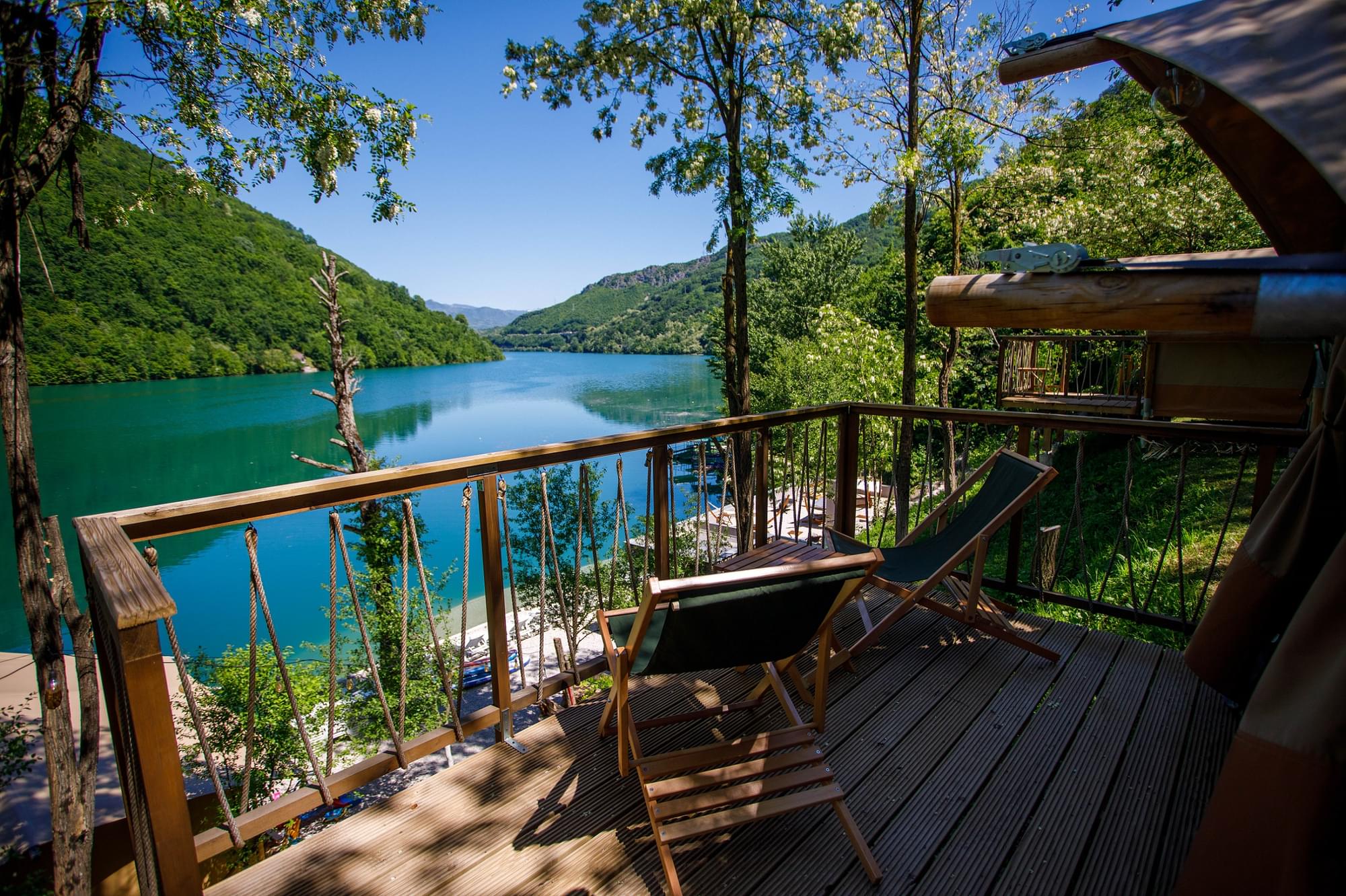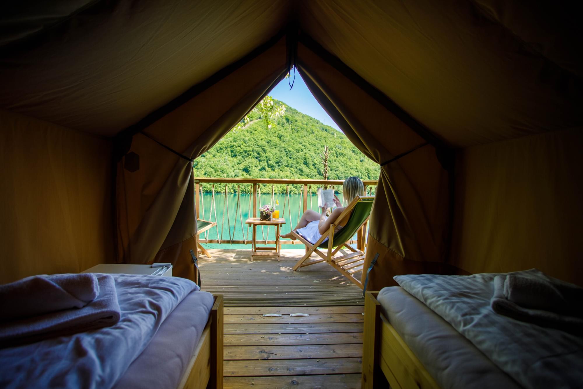 Samo nekoliko koraka od jezera s izravnim pristupom plaži nalazi se osam šatora. Svaki ima vlastitu terasu s prekrasnim pogledom na jezero. Ako volite udobnost, a ujedno želite svoj odmor provesti u prirodi onda je Glamping Bagrem idealno rješenje za vas.
