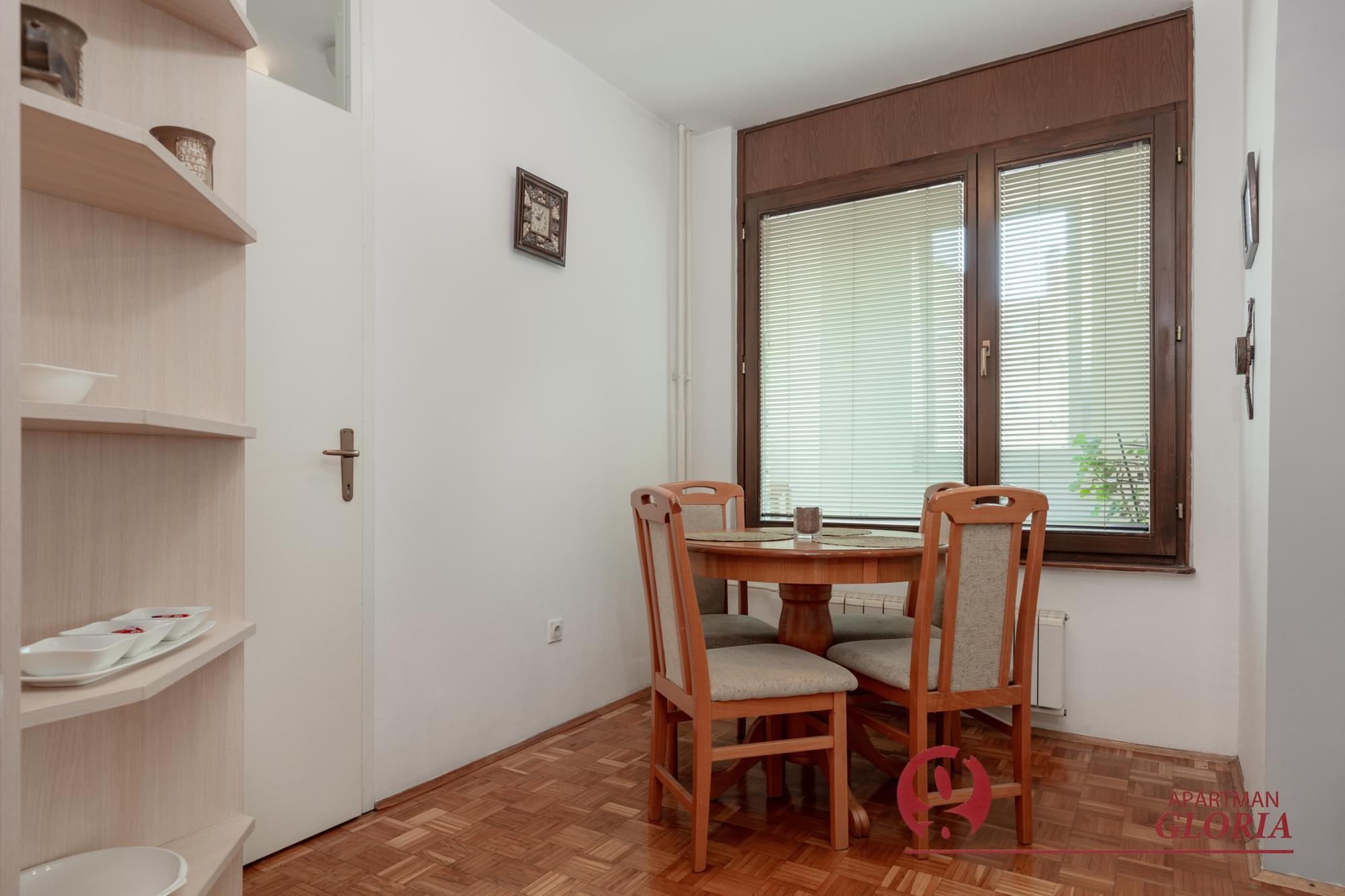 Apartman na četvrtom spratu, u zgradi sa liftom, adaptiran 2017. godine od 55m2. Pogodan za maksimum 4 osobe. Parking je besplatan, gradski (nezonirano područje), blizina kafića, restorana, maxija – radno vreme od 0-24h, gradski prevoz na 30 metara od zgrade. U centru za 20 minuta, na aerodromu za 15 minuta. Kuhinja kompletno opremljena za spremanje i serviranje hrane. Kablovska tv, wi-fi. Posteljina i peškiri za sve osobe.