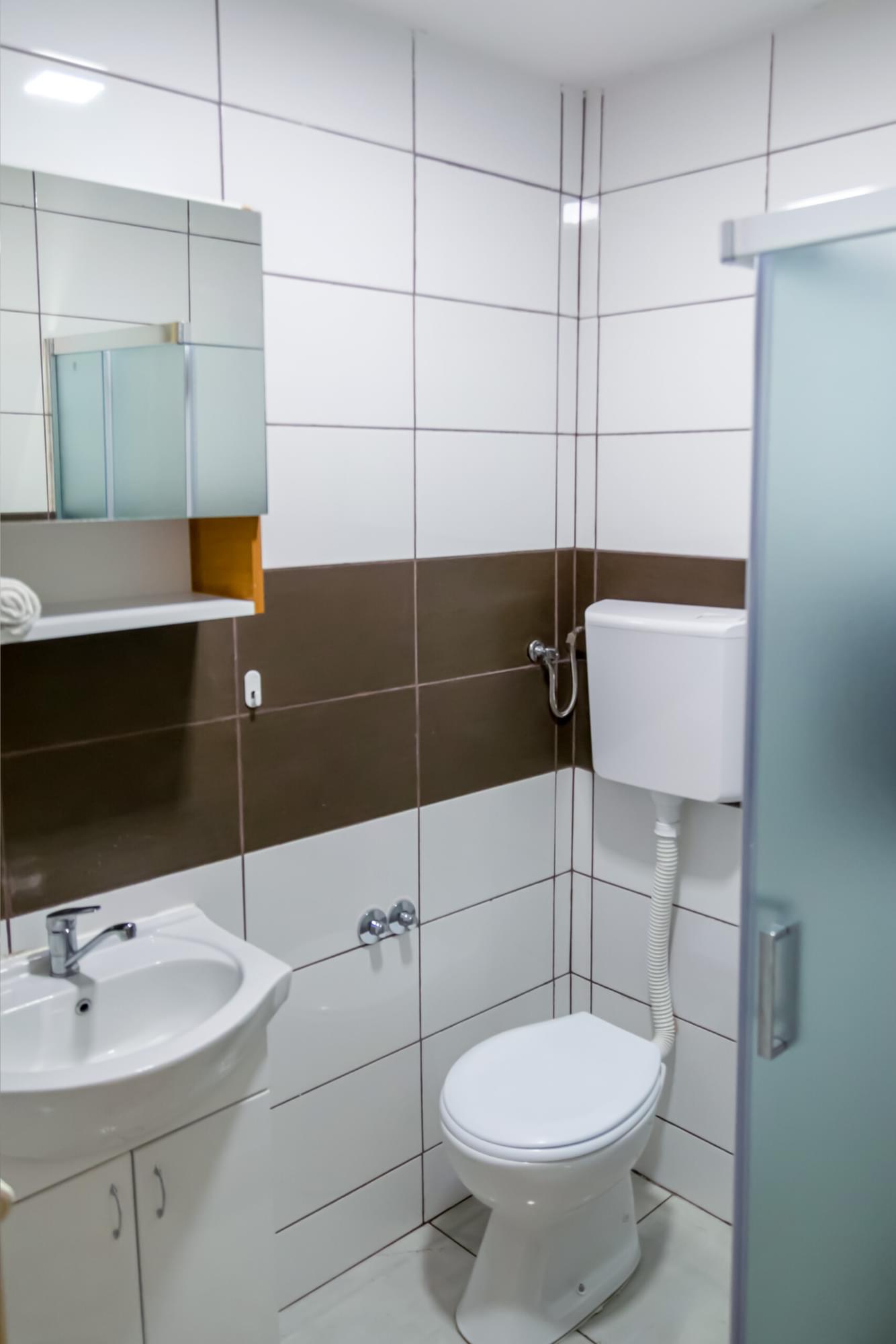 Apartman se nalazi u prizemlju i opremljen je prostranim bračnim krevetom sa udobnim dušekom, što omogućava dobar san i odmor. Tu je i toalet sa tušem, kao i sve potrebne toaletne potrepštine kao što su peškiri, sapuni i šamponi.
