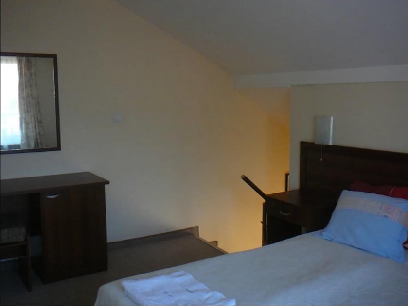 Family Hotel “Kralev dvor” is named on one of the most beautiful peaks in Pirin. The modern building has 8 double rooms, and 8 studios. Four of the studios have two bathrooms. TV, Internet, mini-bar and electronic safe are available in all of the rooms. There are also terraces with great views of the mountain. The guests can also enjoy our lobby bar, ski equipment room, sauna and parking. We can also offer variable relaxing massages.