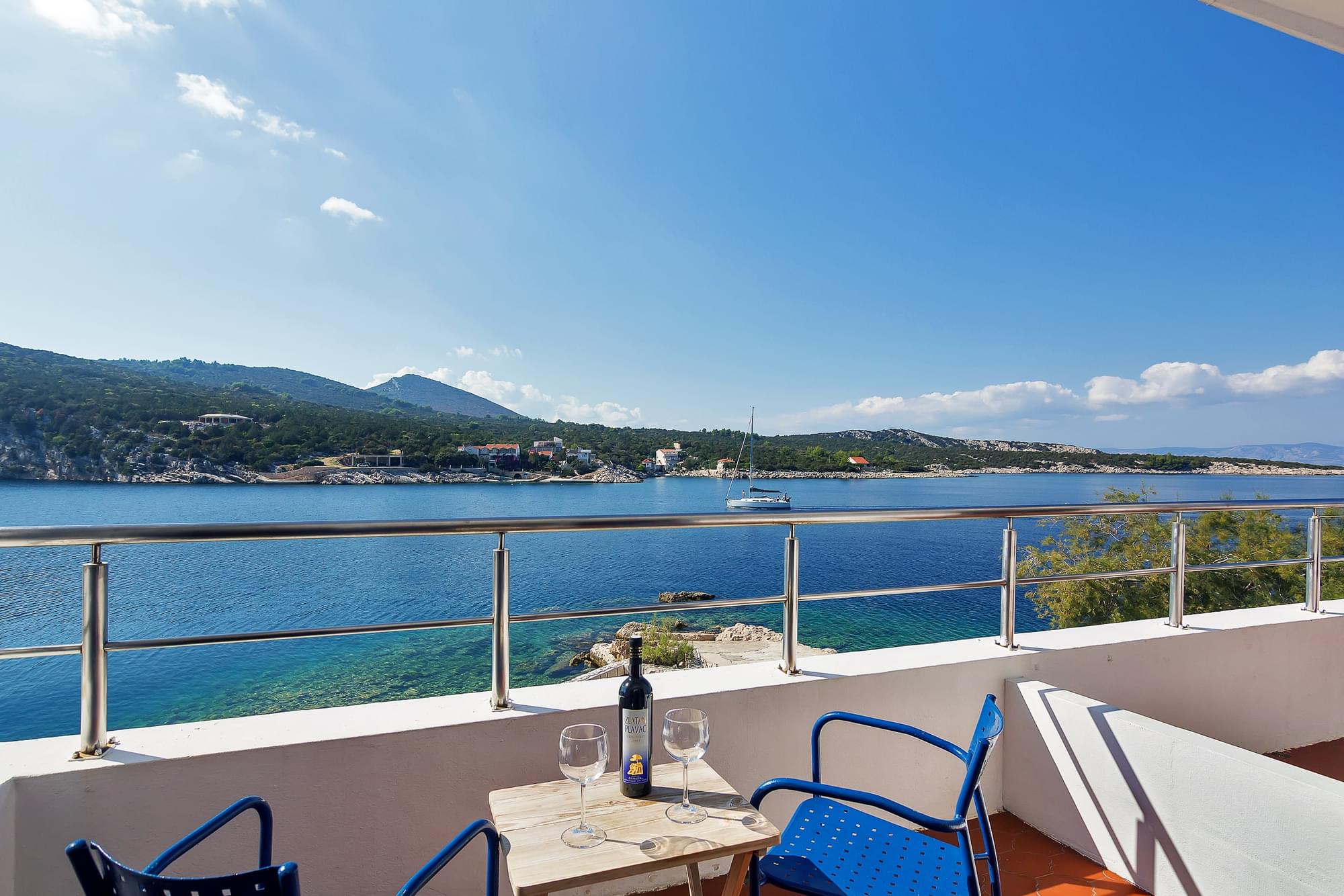 Soba ima vlastiti balkon i prekrasan pogled na zaljev i Jadransko more, vlastitu kupaonicu s tušem, bračni krevet, klimu uključenu u cijenu i satelitske kanale. Wi-Fi je dostupan u cijelom objektu i besplatan je za goste .