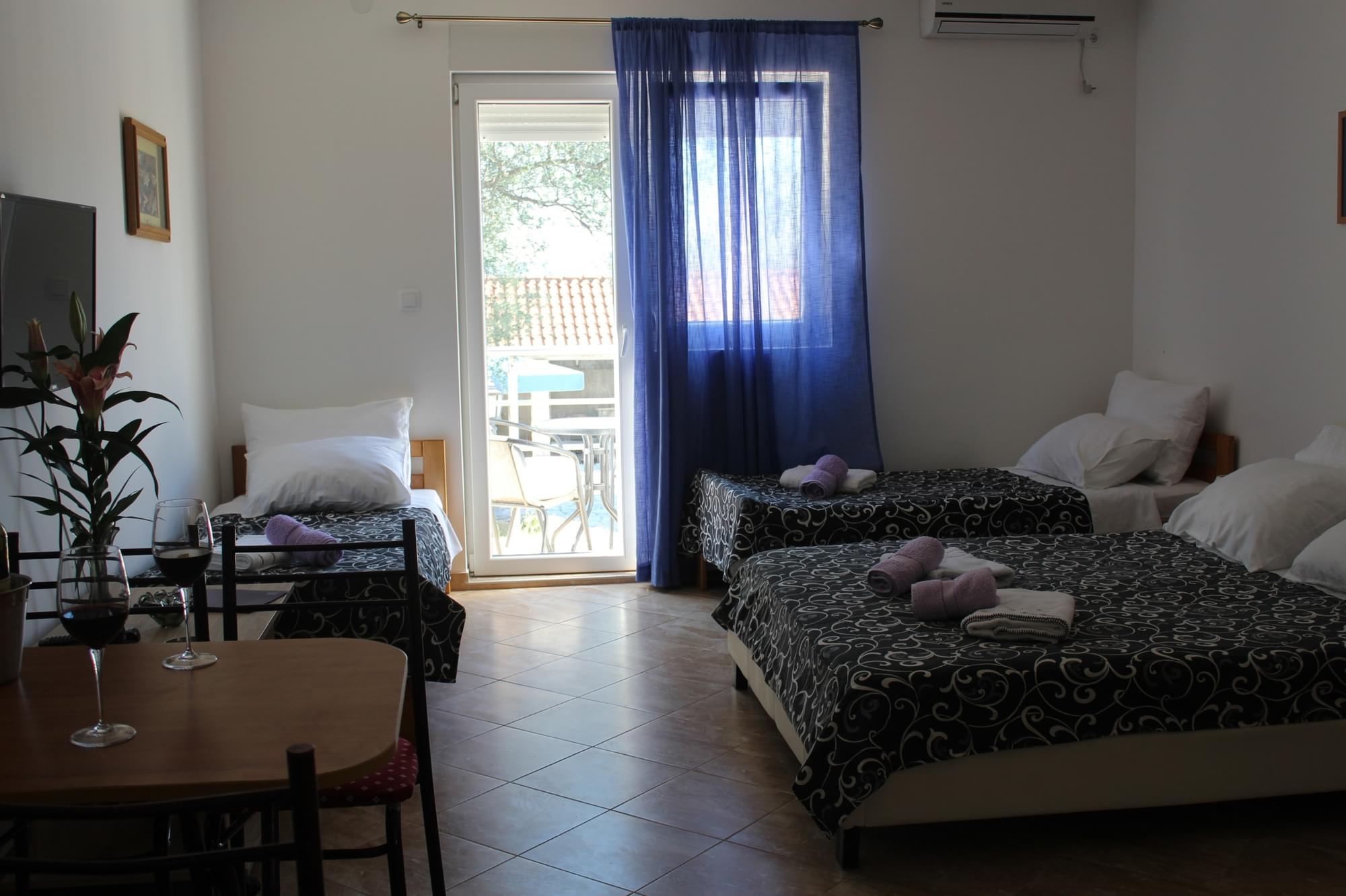 Vila u kojoj se nalaze apartmani je dvospratna, blizu mora, mada ne na samoj obali, tako da je zaštićena od buke i gužve. Smeštena je u prelepom okruženju na mestu gde se uklapaju morski i planinski vazduh. Sa severne strane prostire se šuma prekrivena starim maslinama, a na jugu prelep pogled na more. Prostrano i lepo dvorište, bazen sa đakuzijem, više terasa, roštilj i bar, upotpunjuju ambijent dvorišta. Od prošlog leta gostima su na raspolaganju i novi apartmani u novom objektu odmah pored bazena. Svi apartmani poseduju klima uređaje, tv, kuhinje su potpuno opremljene i poseduju sve što vam je potrebno za komforan odmor. Svi gosti imaju obezbeđen parking. Besplatan internet je dostupan u svim apartmanima, bazenu i dvorištu. Ceo kompleks je jako pogodan za porodice sa decom.