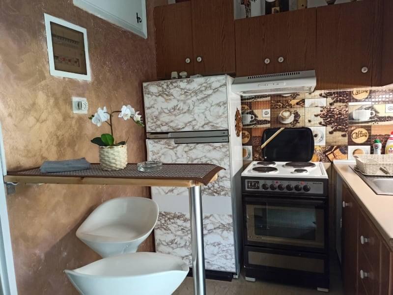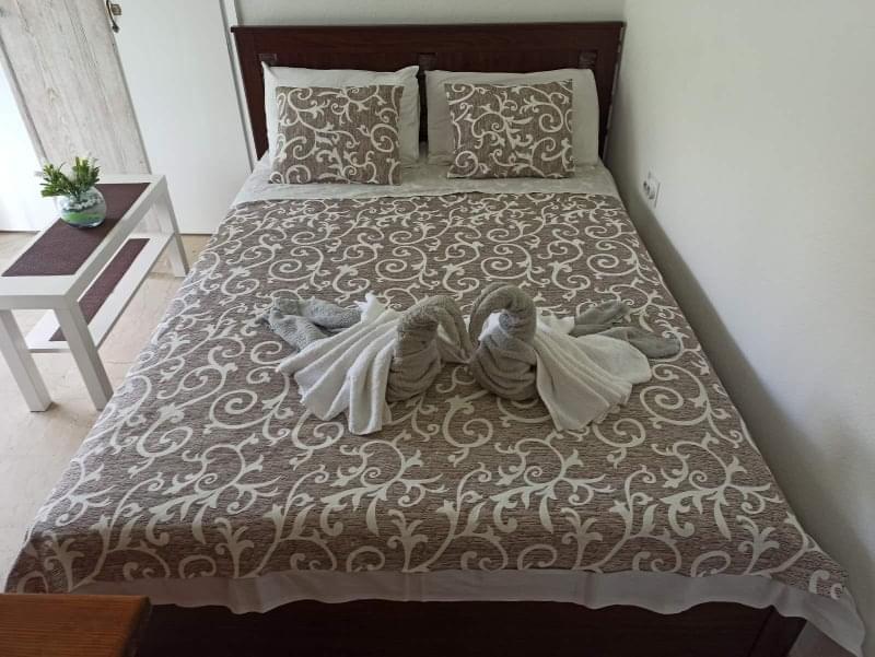 Poseduje dve zasebne sobe, ležajeve 4+1 tj. dva ležaja i fotelja na rasklapanje. Full opremljena kuhinja, kupatilo i veoma prostrana terasa sa pogledom na vrt. TV sa velikim izborom kanala i Wi-Fi. U samom vrtu se nalaze tuševi kao i zelenilo, gde bezbrižno mogu uživati mališani. Od velike važnosti jeste i to da sam apartman poseduje svoje PARKING MESTO.