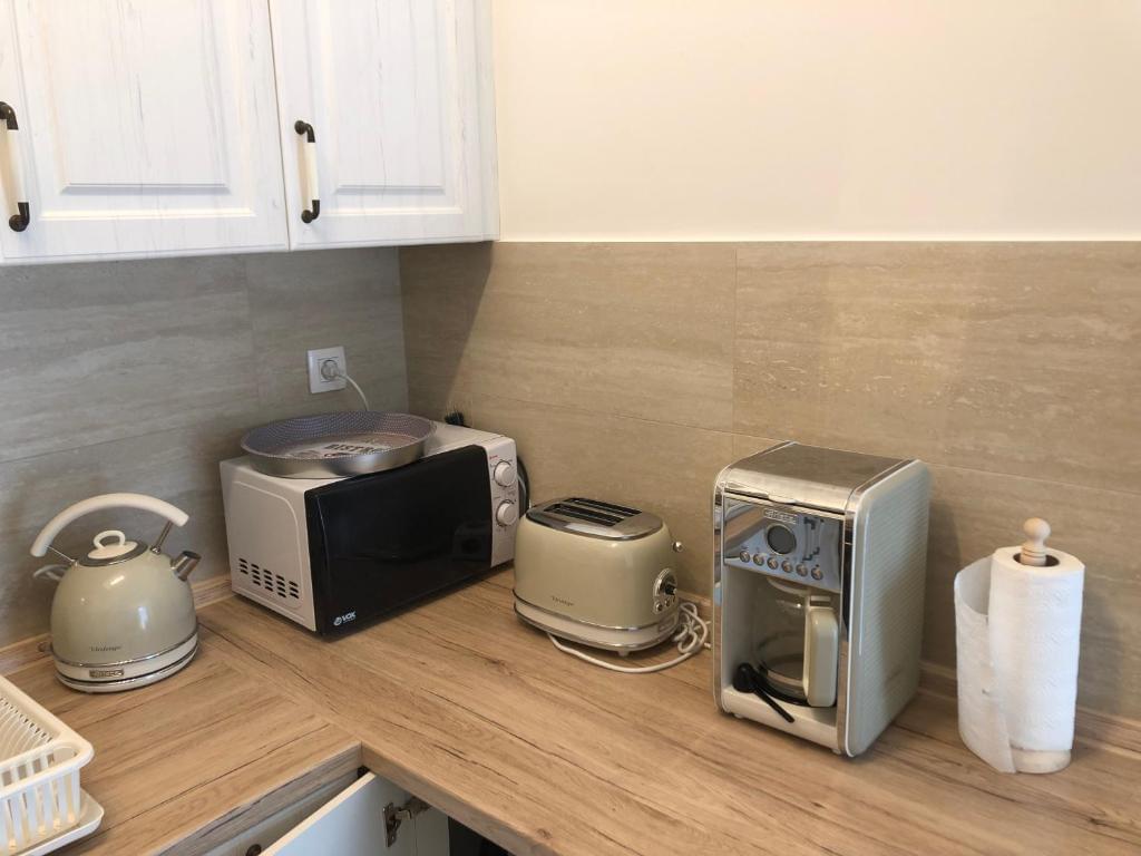 Stan ima kablovsku televiziju, WiFi, 2 televizora, 2 klima uređaja. Kuhinja je kompletno opremljena, poseduje i sudo-mašinu, mikrotalasnu rernu, aparate za kafu. U kupatilu je dostupna i veš-mašina.