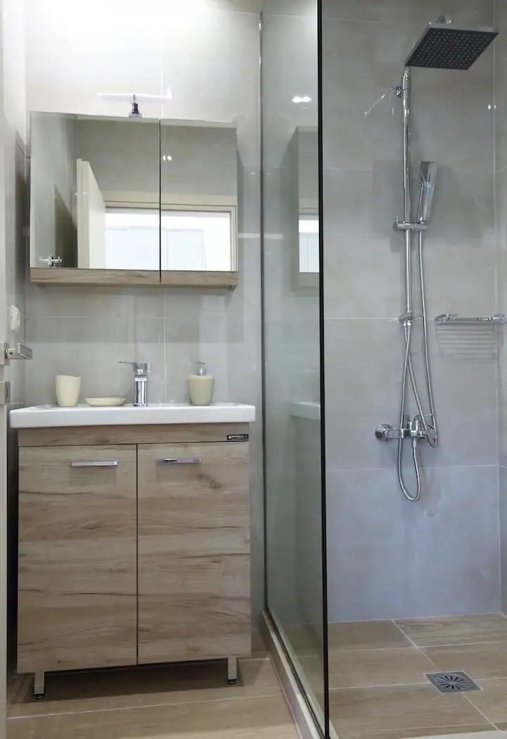 Villa Thanasis is a wonderful three-bedroom villa, ideal for up to 8 people. When you enter the villa from the first floor, you will walk into the spacious living room with as centerpiece the stone built fireplace. Next to the living room is the fully equipped open plan kitchen. From this floor, you have access to the large terrace to admire the view while relaxing at the outdoor seating area. There is a bathroom on this first floor with a shower for your convenience.