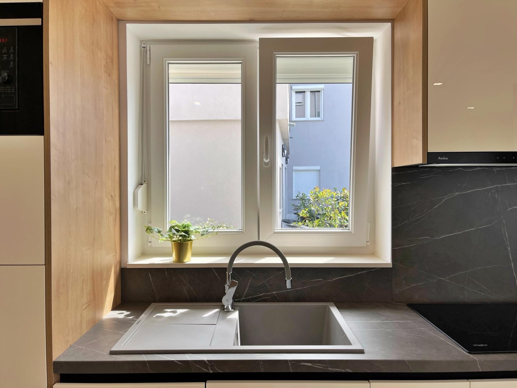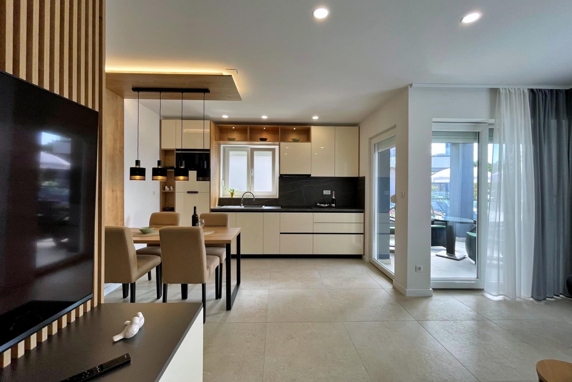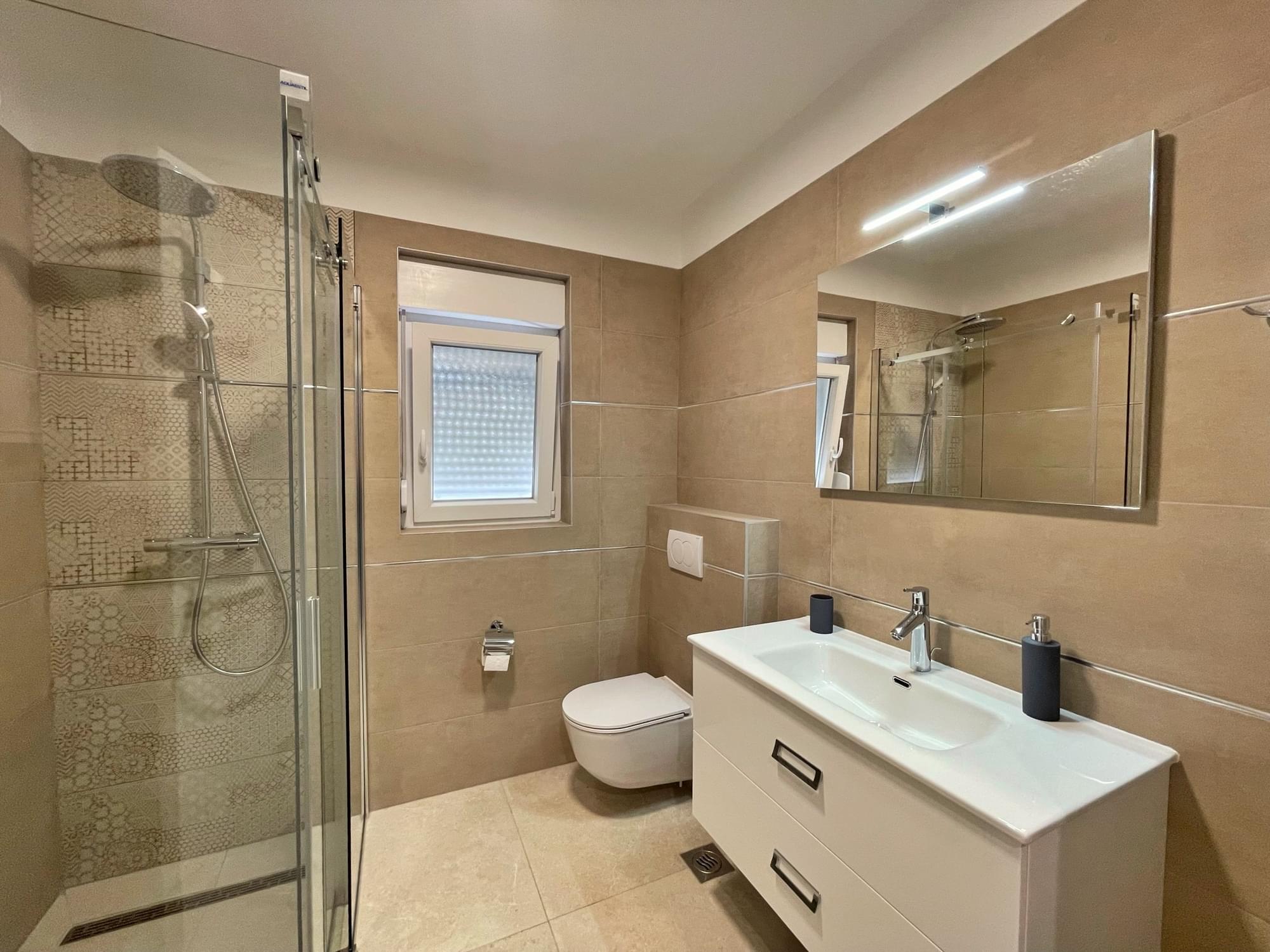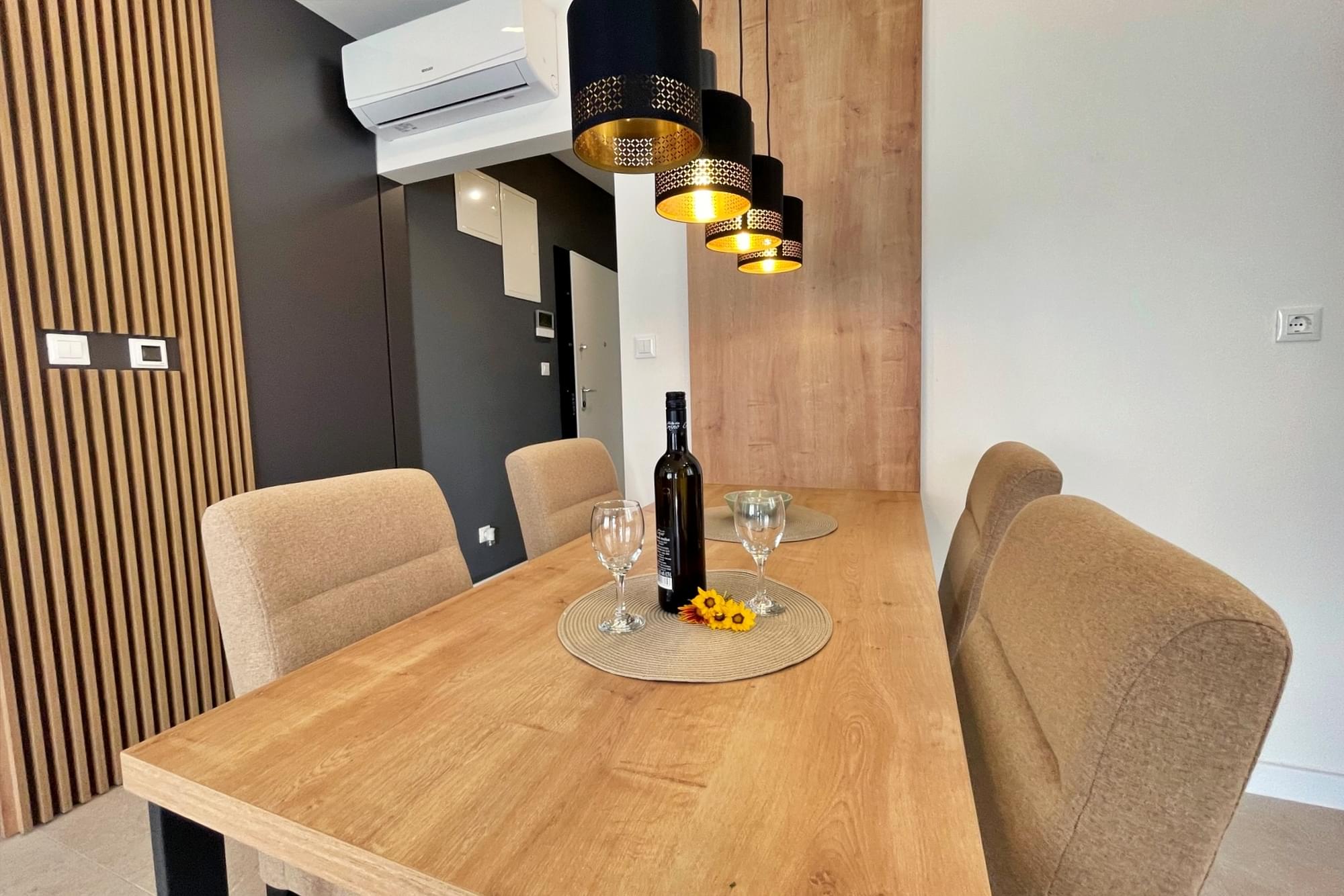 The apartment is located on the ground floor and has a private parking behind the building. There is also a large pebble beach in the immediate vicinity, and a great restaurant just across the street, which also offers a selection of local specialties. This apartment is located on the ground floor and can accommodate a maximum of 2 people. It is modernly equipped with two A/C units and two Smart TVs with satellite programs (in the living room and bedroom). Bed linen and towels are provided. The kitchen has an induction hob with all necessary dishes, a fridge with a separate freezer, a coffee machine, a toaster, a kettle, a dishwasher, and a microwave oven. The apartment has a terrace (10 m2) with outdoor furniture and a sea view.