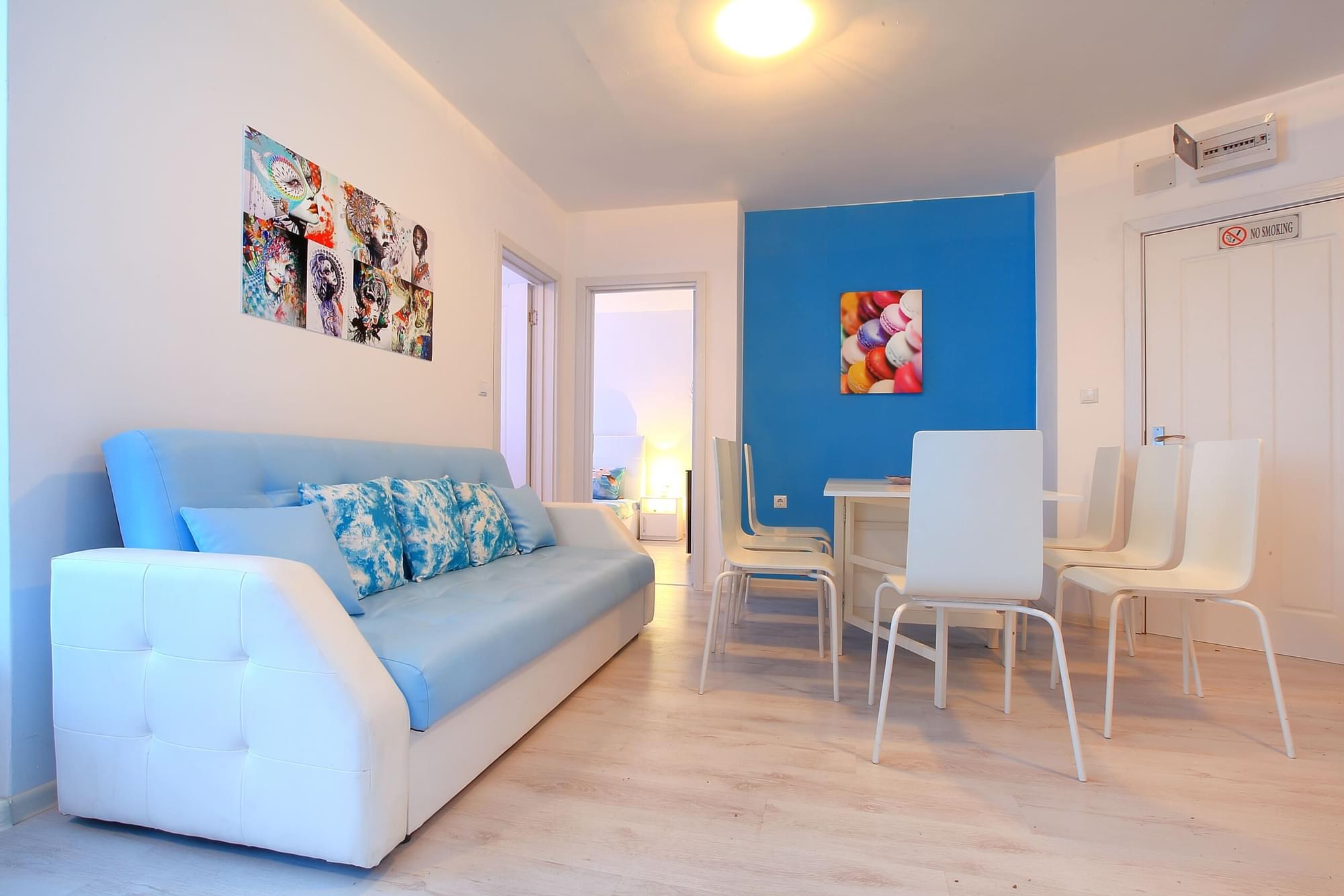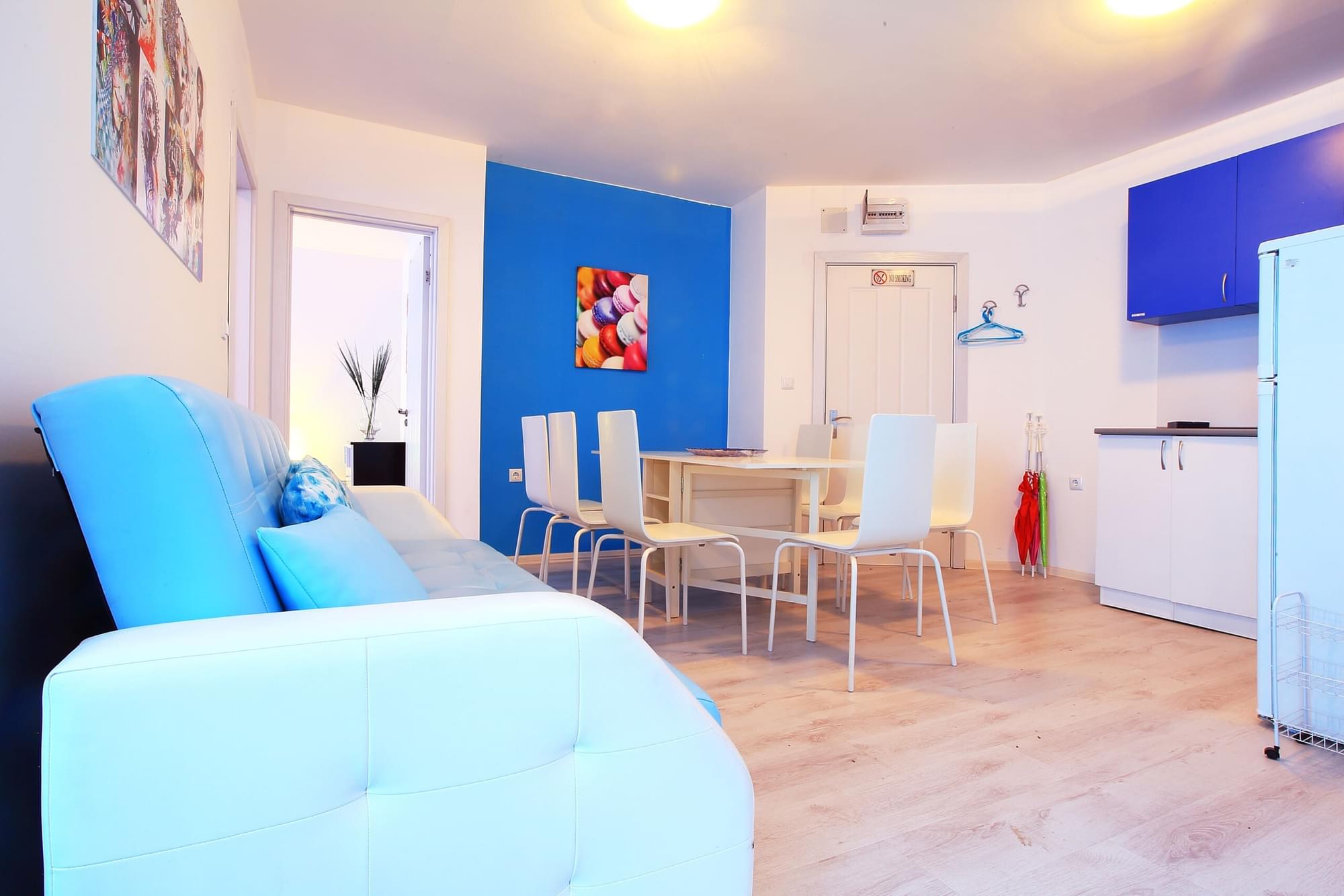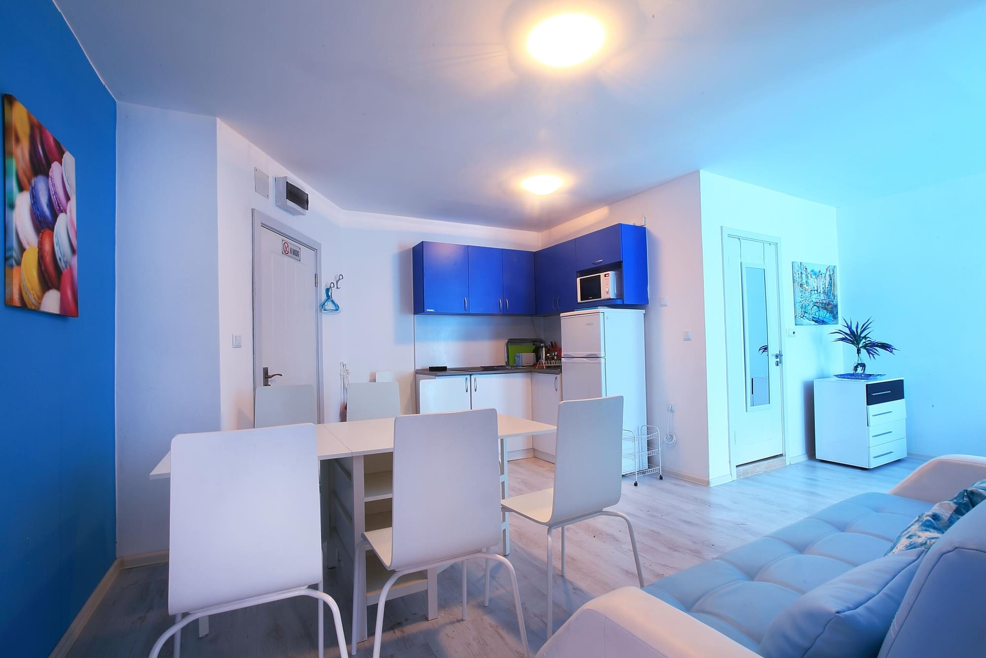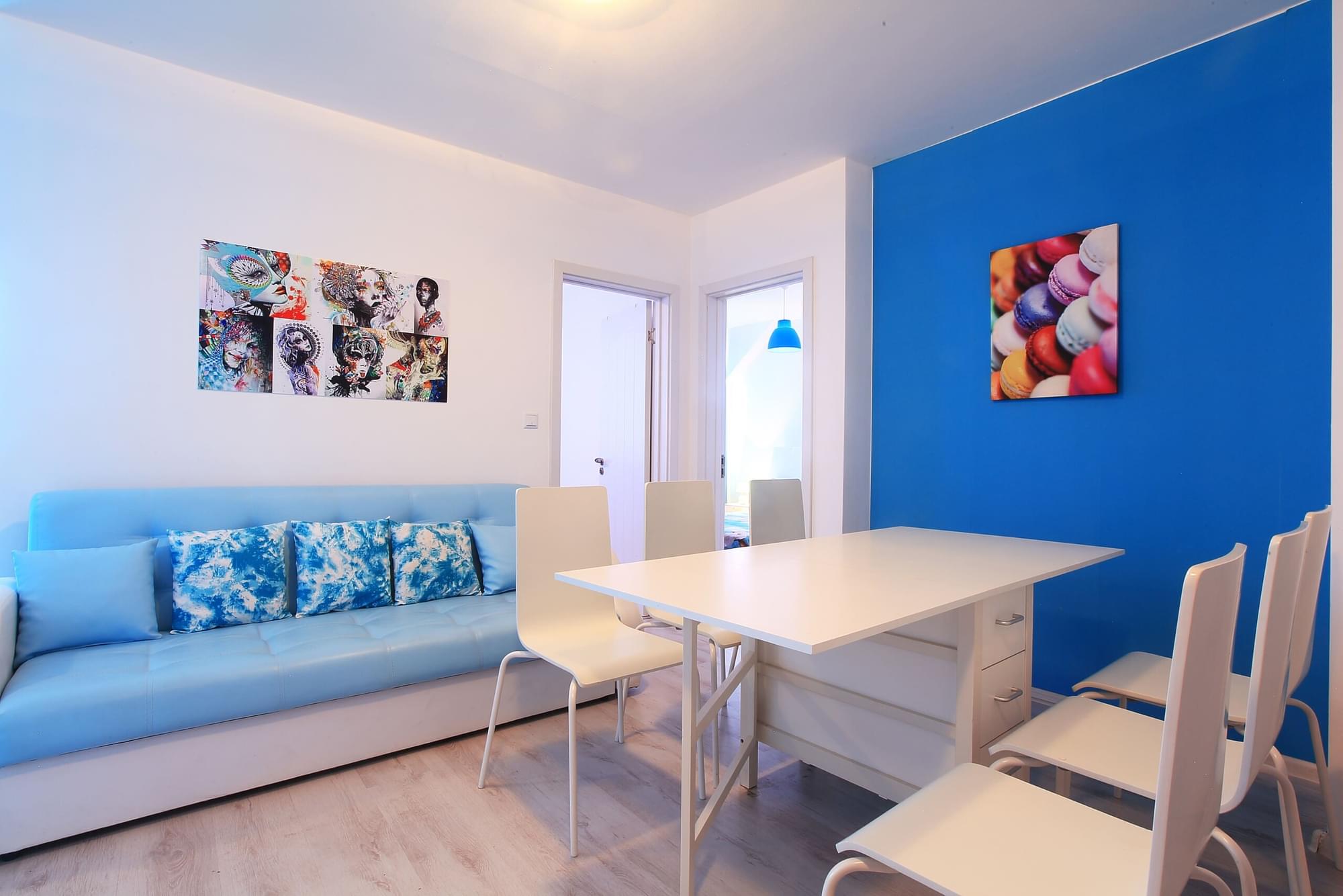 There is a wide range of apartments from different types: studio for 4 and 5, apartments with 1 bedroom for 4-5-6 pers, apartments with 2 bedrooms for 6 and 7 pers.