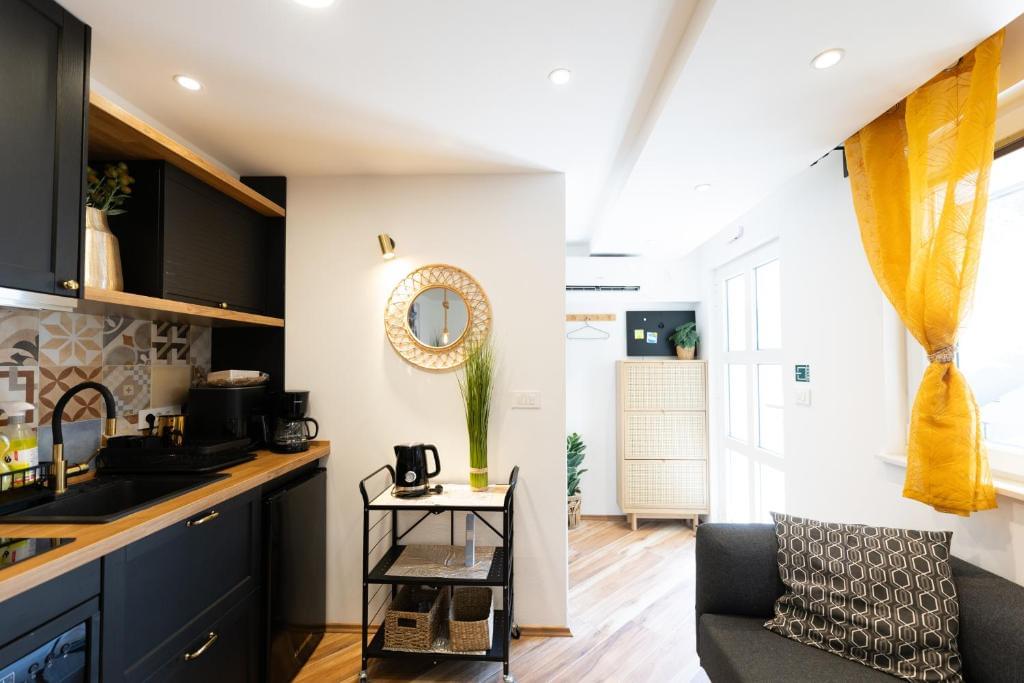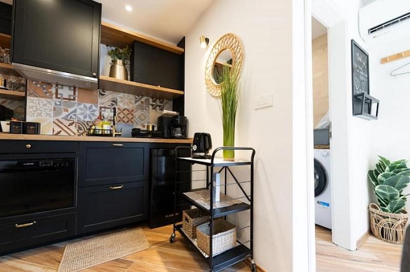 The apartment is new and modern furnished, equipped with everything needed for a comfortable stay for two people. Just next to the terrace, there is another apartment of the same size, and if available, both can be booked together to accommodate up to four guests (ideal for couples or families with teenagers). The location is perfect for a relaxing stay — it’s in a quiet neighborhood, yet within walking distance (5 to 20 minutes) of a grocery store, a pizzeria, a bakery, the Old Town, and Bellevue Beach, with no need for a taxi.