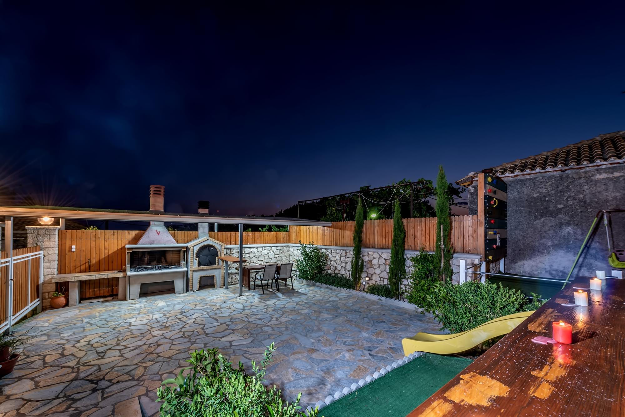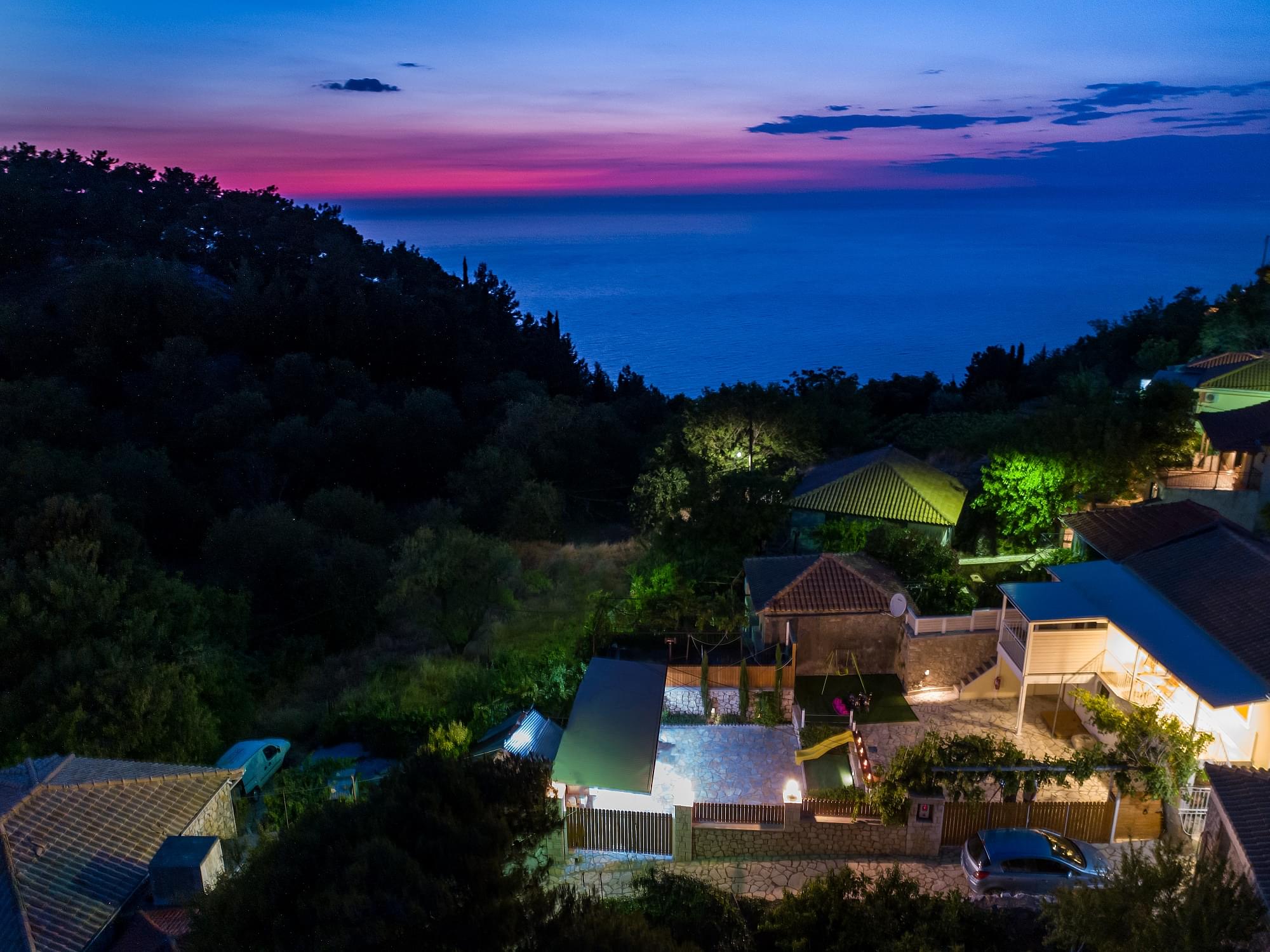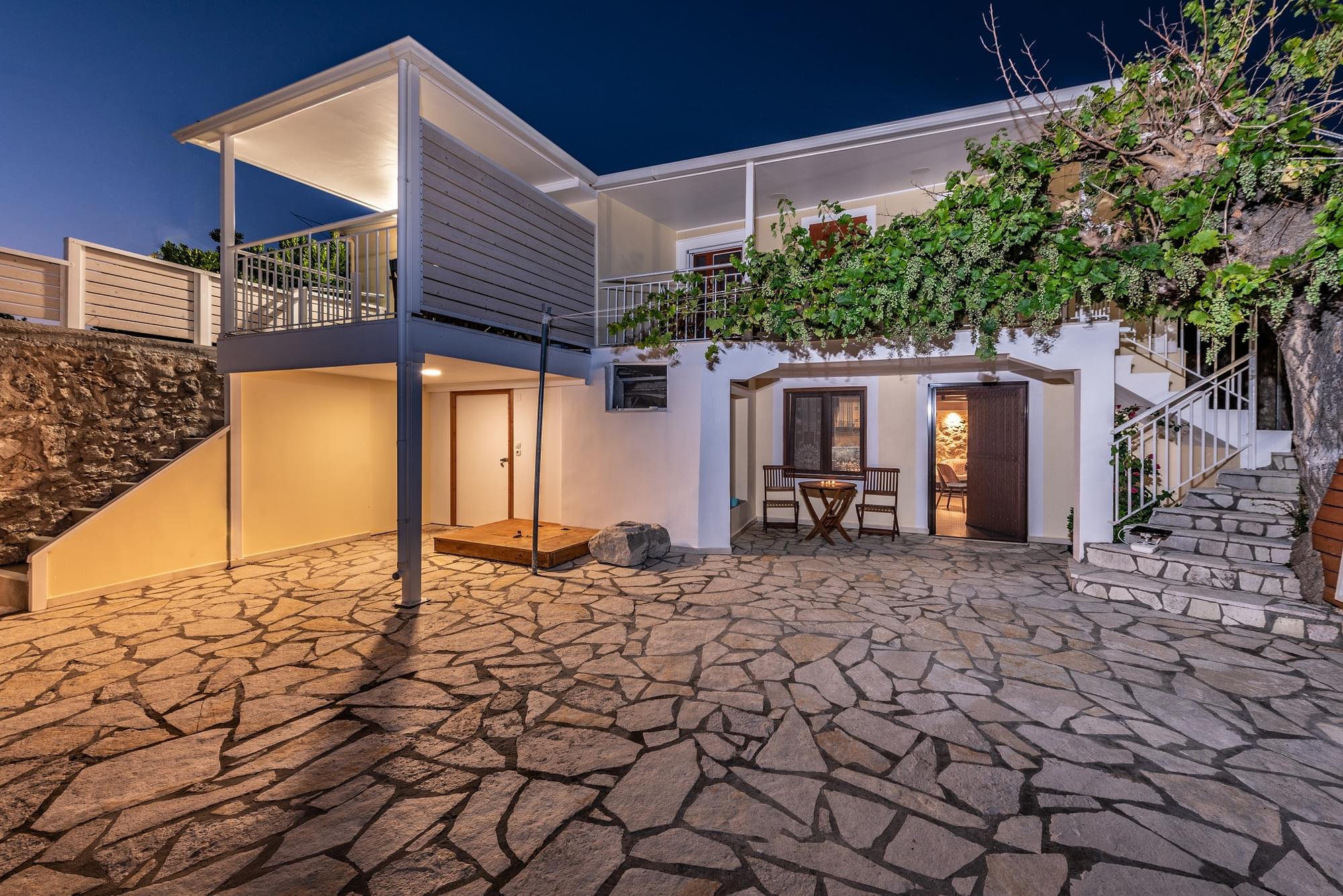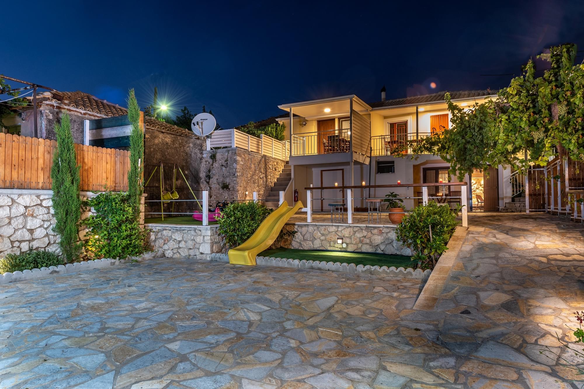 “Matafia’s house” is a self-combined building with two apartments. It is located in a very calm neighborhood but too close to the taverns, coffee shops and mini markets of the village, just 200-300m. From the first floor you can enjoy the nice view of the amphitheatrically village till the immense Ionian Sea. In the yard you can enjoy your meals as you can find BBQ. Moreover, your kids can have fun in our private playground. There is parking place about 150m from the house.
