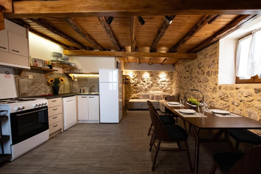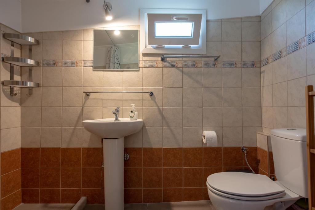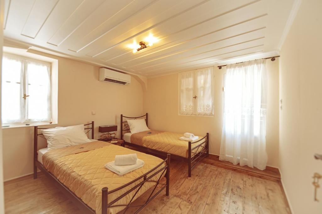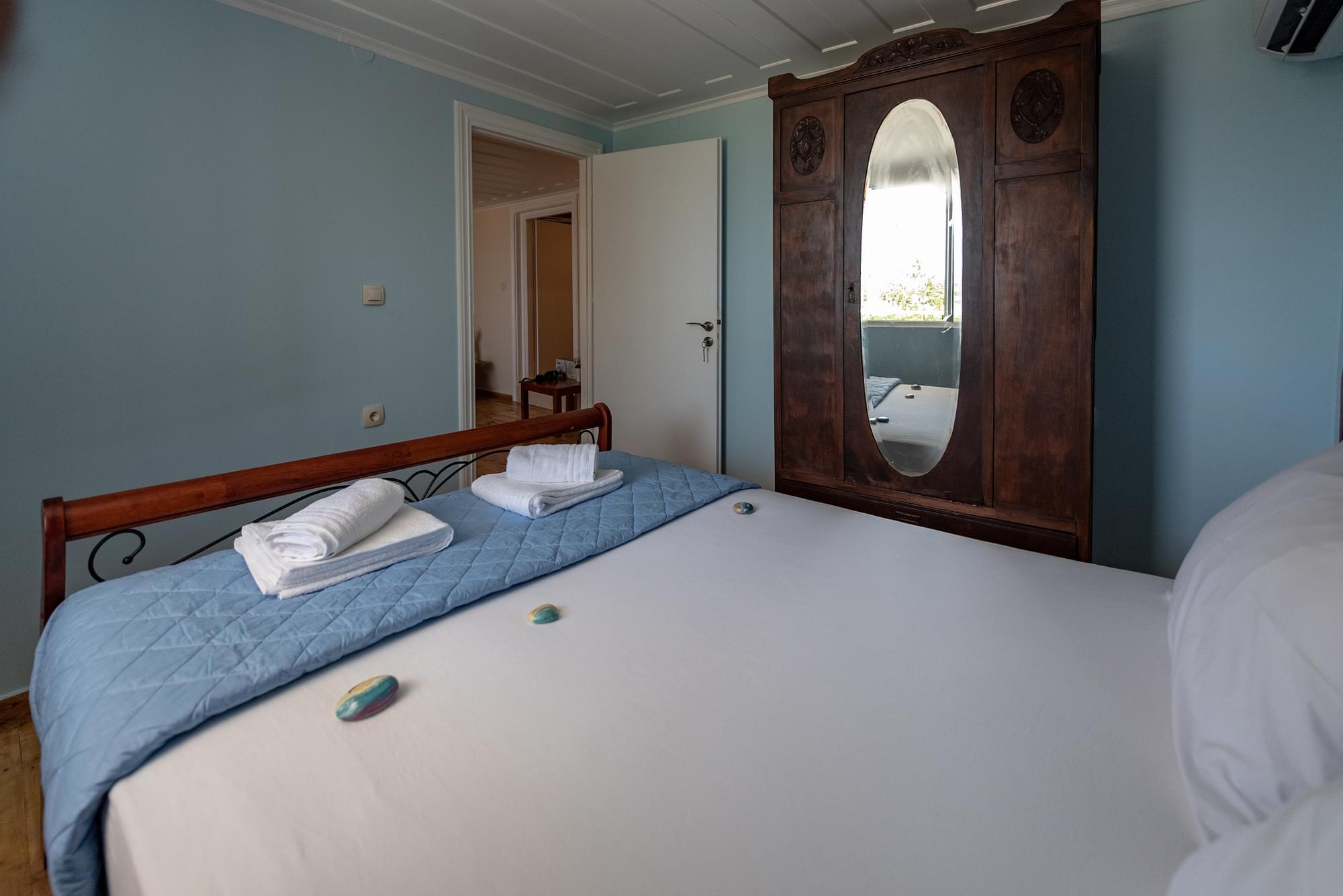 The one of these apartments is a two storey apartment (maisonette) that can accommodate 5-7 persons (2 families, three couples or company of friends). On the first floor there are two bedrooms, a living room and a bathroom. On the ground floor there is a living room with a sofa that converts into a double bed, a dining room, the fully equipped kitchen and the second bathroom. Of course, there are two smart TVs, air conditions and free Wi Fi access.