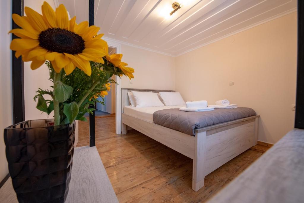 If your company needs two apartments please contact us, as there is one more apartment that is on the first floor with a nice private veranda that can accommodate 2-4 persons. It contains a bedroom with a double bed, a living room with a sofa that converts into a bunk (two single stable beds), a fully equipped kitchen and bathroom. Of course, there is a smartTV, air condition and free Wi Fi access.