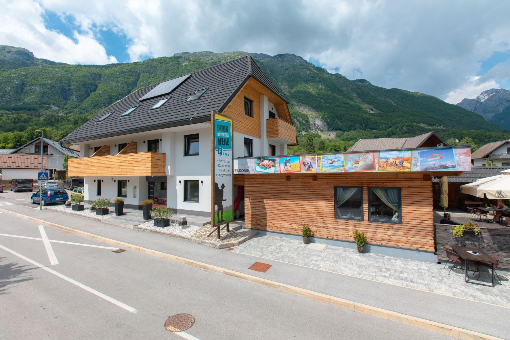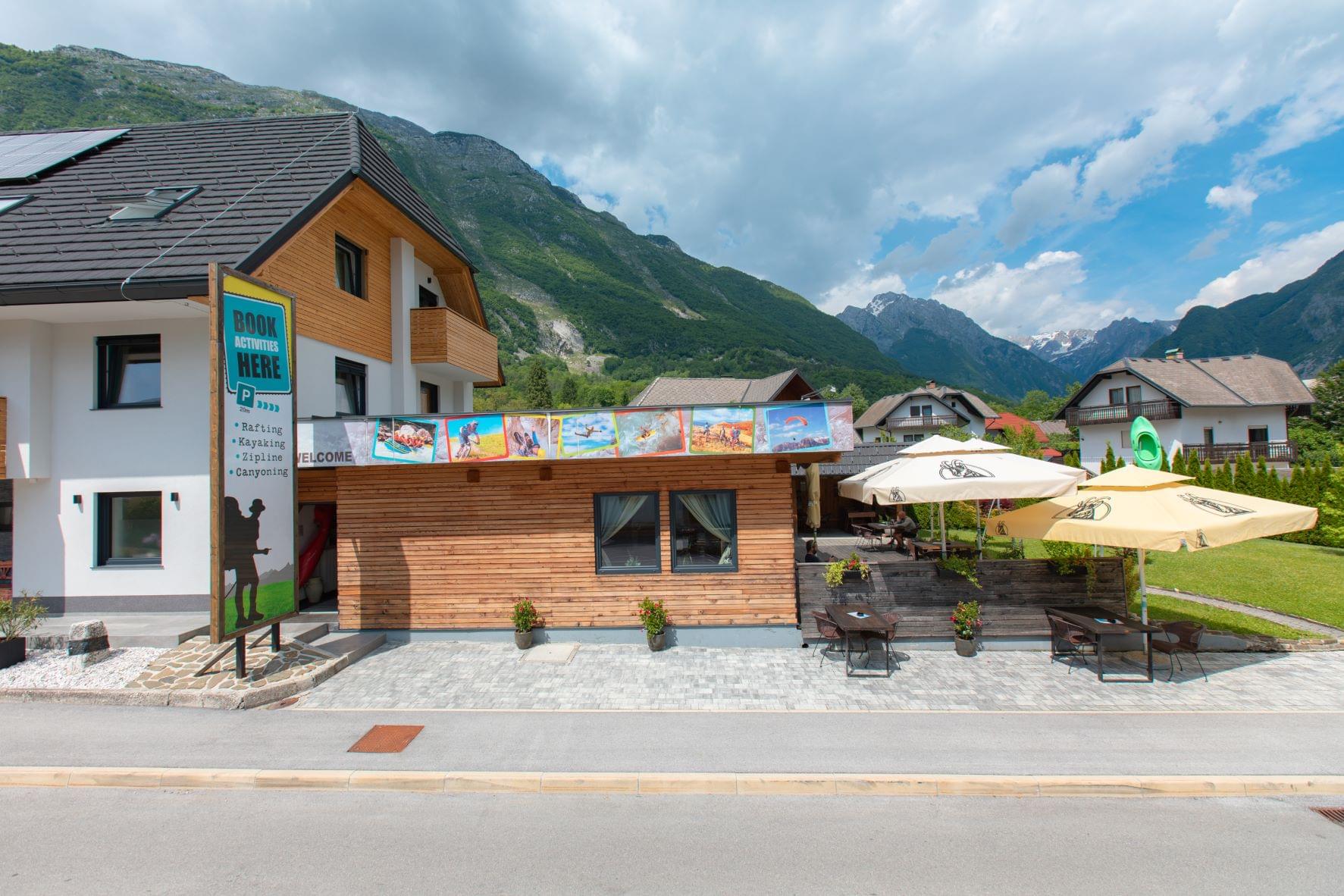 You can find us in the immediate vicinity of the center of Bovec, the Slovenian mecca of adrenaline sports, which is undoubtedly a paradise for all enthusiasts of unspoiled nature, crystal clear rivers and high mountains.