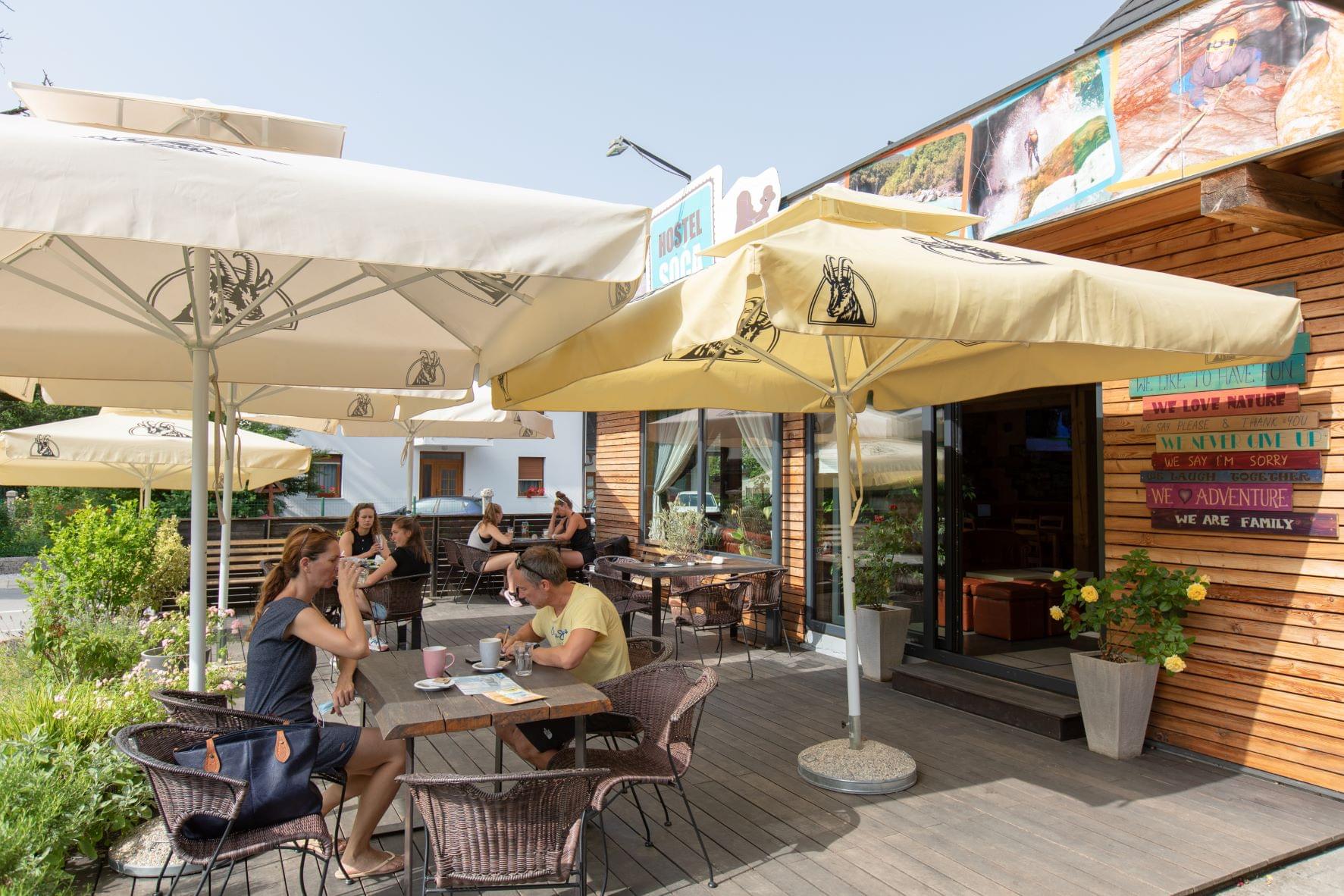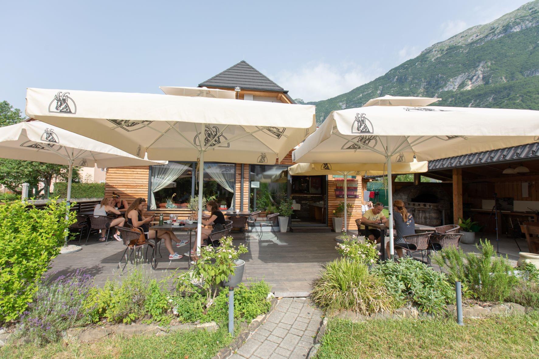 Guests can relax in our lively bar or on the terrace overlooking the surrounding Soča Valley hills, including the infamous Svinjak. We are here for you to ensure top comfort, unforgettable memories and insanely fun holidays in the heart of the Bovec Valley.