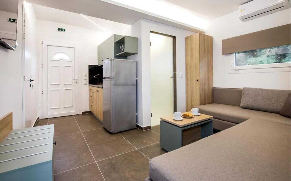 The apartments Mythos Bungalows offer comfortable and unique aesthetics studios, apartments, one bedroom apartments and two bedroom apartments. All studios and apartments offer a high level of comfort and style in a contemporary setting.