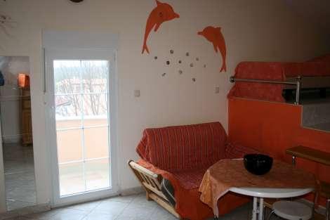 Apartman se sastoji iz 2 zasebne spavaće sobe za po 2 osobe i galerije sa tri ležaja za tri osobe, kupaonom wc, kompletnom kuhinjom, perilica za suđe, magnetrpn, sef, terasa 12 m2.