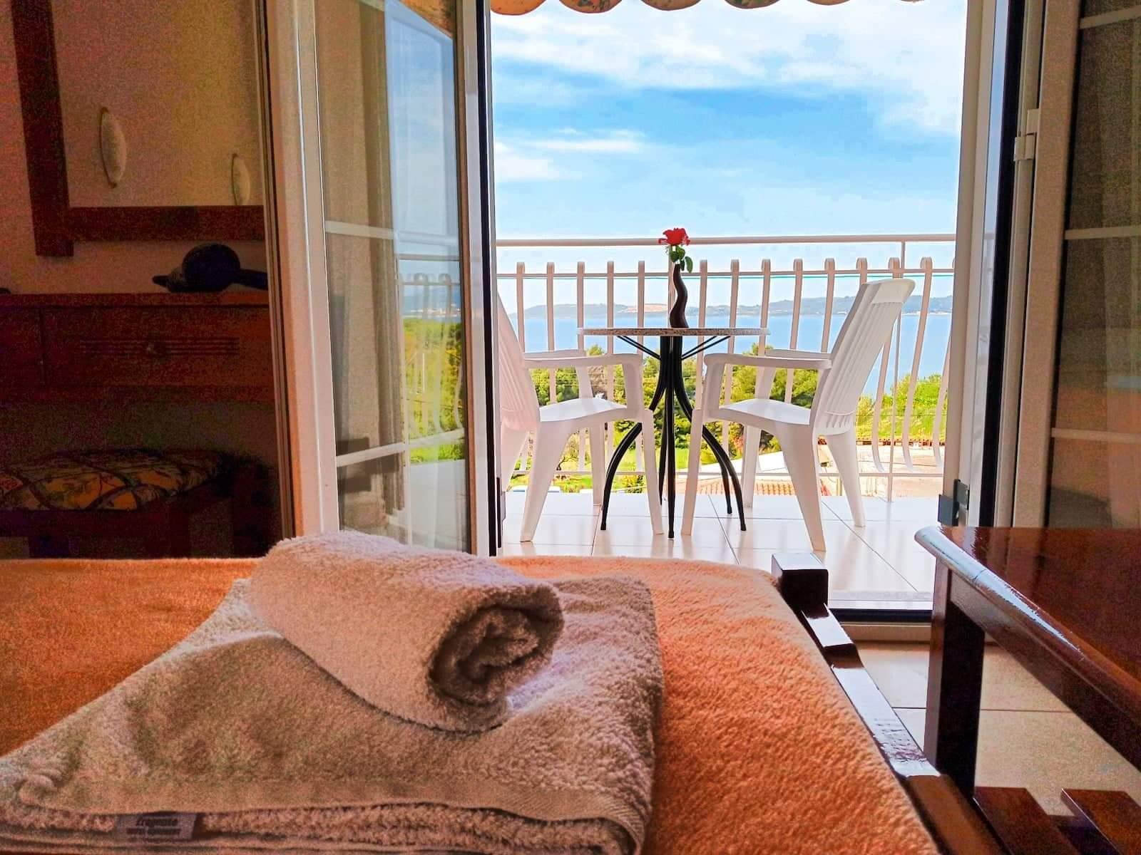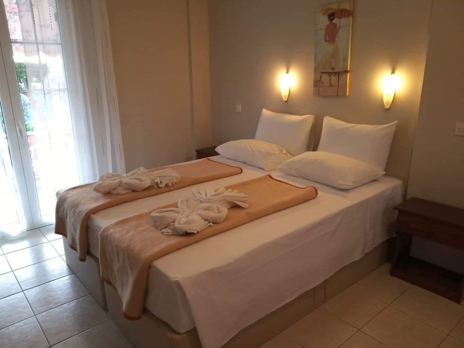 This studio is an open plan apartment, consisting of a sleeping/living area with two single beds or one double bed, private bathroom with a shower, fully equipped kitchenette (with two hotplates) and a private balcony or terrace overlooking the Ionian sea, the sunset and the area of Palliki Peninsula as well as the coastline of Kefalonia. There is also a sofa bed that can host a third person.