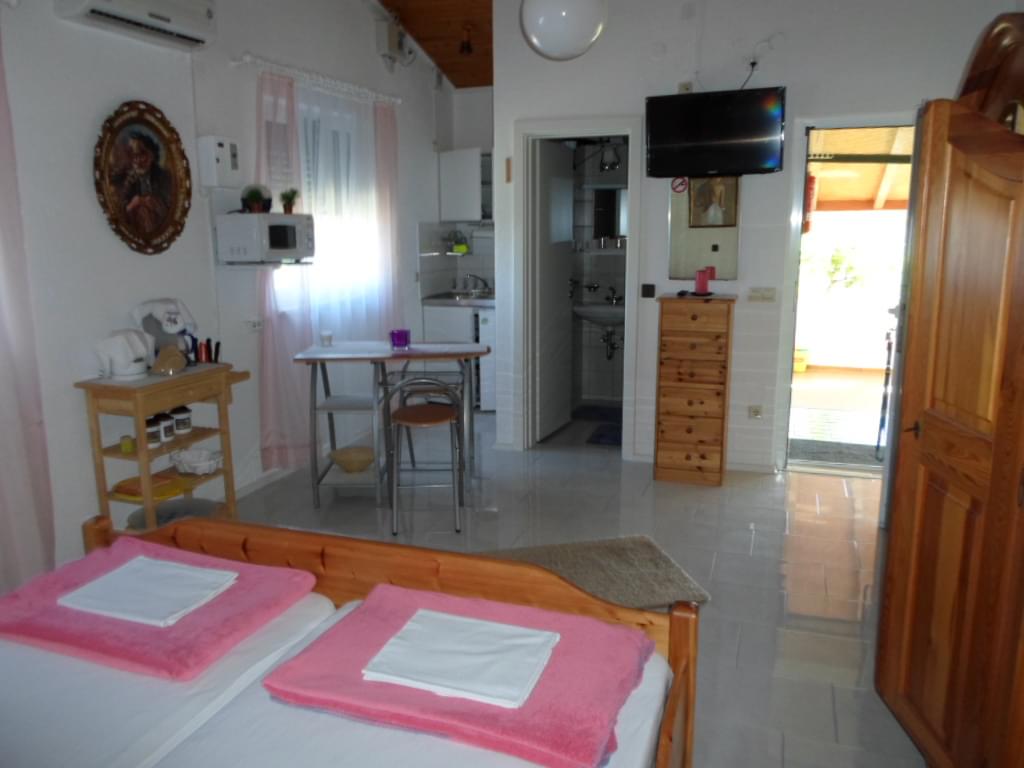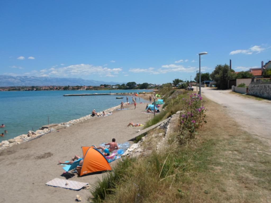 Apartman u Hrvatskoj Dalmaciji, Pješčana plaža Dalmacija Zadar – Nin 2 x Studio apartman, mala kuhinja, tuš. Idealno za 2 osobe. eventualno sa djetetom. 150 m do pješčane plaže, klima uređaj (uz nadoplatu), veliki natkriveni balkon. App 1 balkon 16m², App 2 balkon 11m² SAT-TV, internet, roštilj, itd. (Transfer iz zračne luke po dogovoru) Apartman 1 ima mogućnost dodatne dvokrevetne sobe za iznajmiti za 2 osobe, mogućnost za više. Cijene od 15€ App 1 2 od 45 do 65€