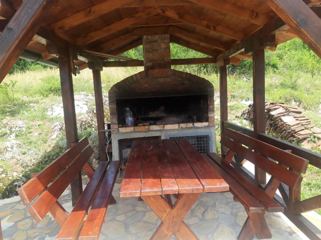 Vikendica ima terasu koju gosti mogu da koriste.