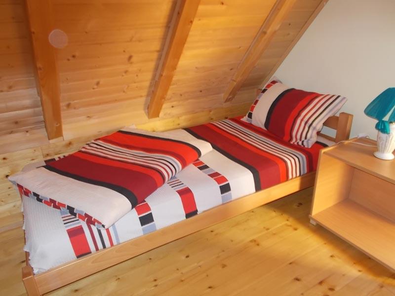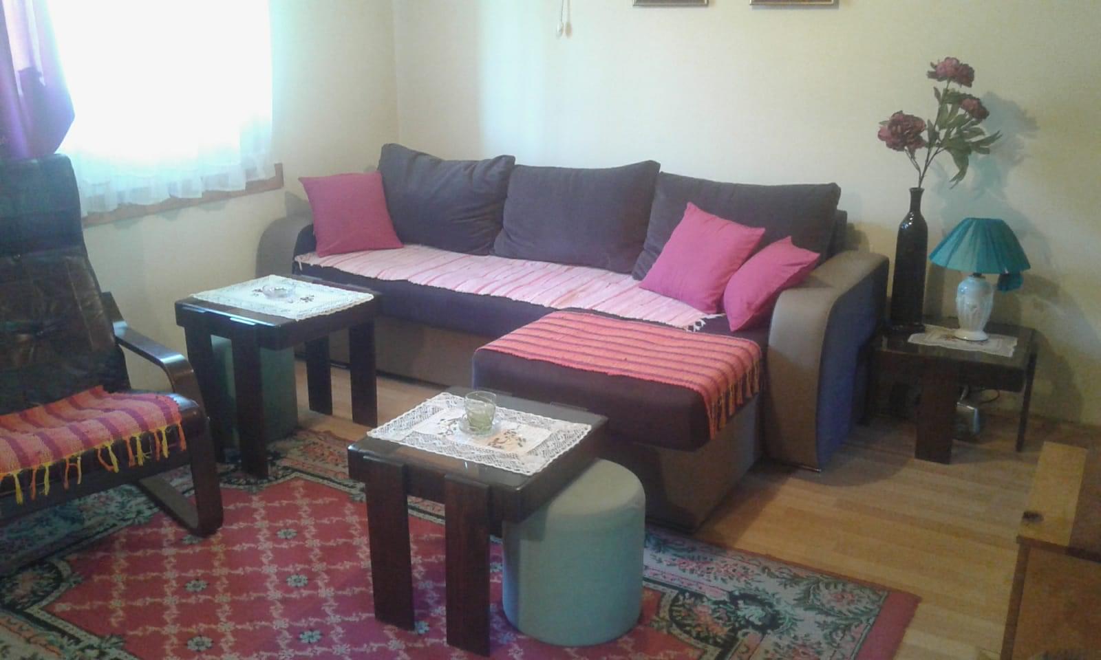 Površine je 60m² i ima 6 ležajeva (jedna soba bračni krevet za 2 osobe, jedna soba 2 kreveta za po 1 osobu i dnevni boravak ugaonu na razvlačenje za 2 osobe).
