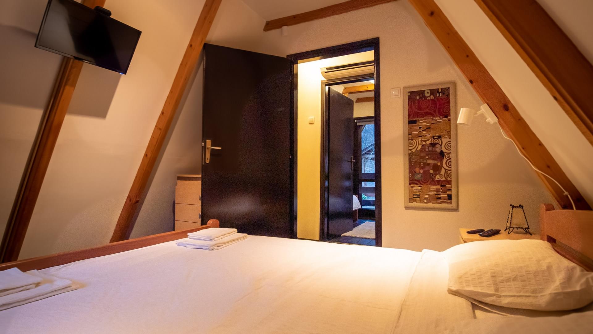 Smeštajni kapacitet objekta je do 6 osoba, u tri prostorije! Kuća poseduje klima uređaj, a u zimskom periodu grejanje je na struju i na drva, uz predivnu romantičnu peć sa staklenim vratima, kroz koja se vidi vatra! Za pun komoditet i uživanje, na raspolaganju vam je i biblioteka sa preko 50 naslova domaćih i stranih pisaca, kablovska televizija uz besplatan bežični internet u celom objektu i dvorištu i muzički kutak, sa preko 120 CDa najraznovrsnije domaće i strane muzike!