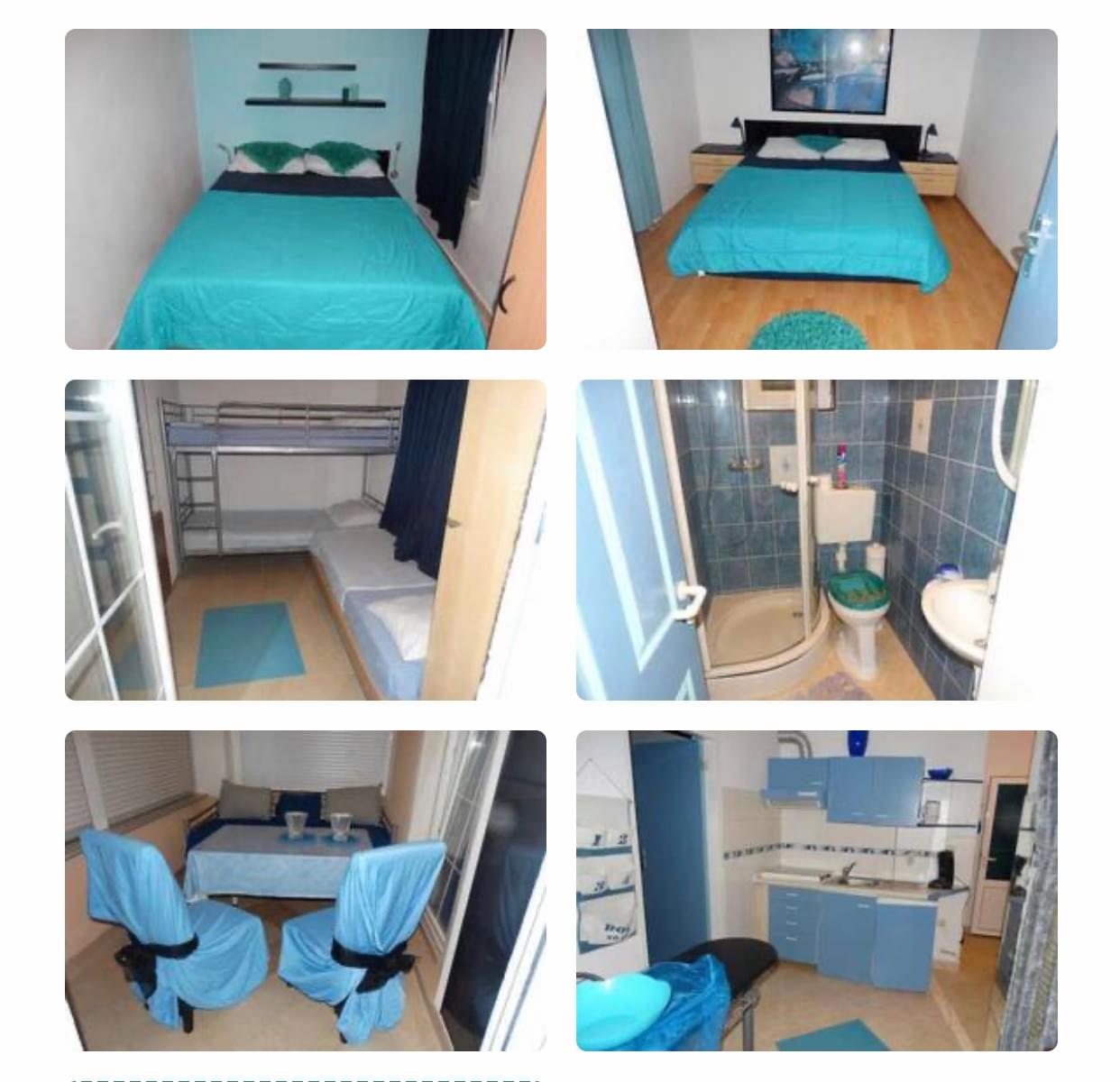 Plavi apartman se nalazi na 1. etaži i sastoji se iz 3 zasebne spavaće sobe, kuhinje, terase, kupaone, wc, sef, klima. Svi gosti mogu besplatno koristiti bicikla za vreme boravka, kao i kuhinju napolju sa grilom, po dogovoru. Parking je, također, dostupan.