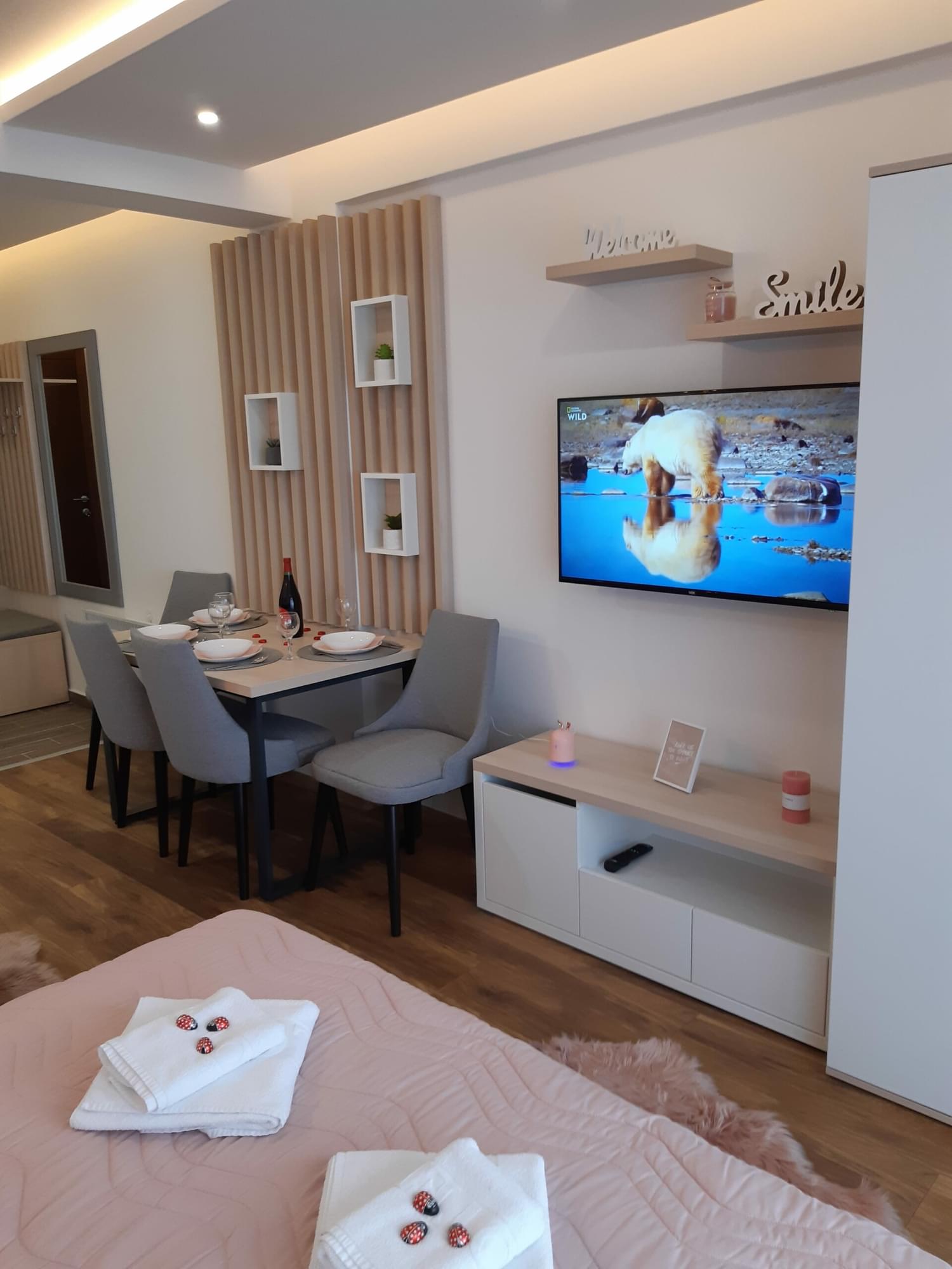 Апартман за 4 особе. Бесплатан бежични интернет, бесплатан паркинг, маркет на пар корака. Спа&веллнес центар са богатим садржајима и ресторан почиње са радом 1. децембра – на пар корака обележена стаза за шетњу. Лепо време је ту, идеално за планину, нарочито за једну коју воли природу и опуштање. Дођите и одморите се, напуните батерије, јер се то може само на Копаонику, у нашем потпуно новом, луксузно опремљеном апартману. Добро дошли!